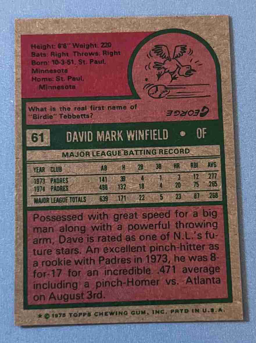 75 ToppsMini DAVE WINFIELD #61 HOF!