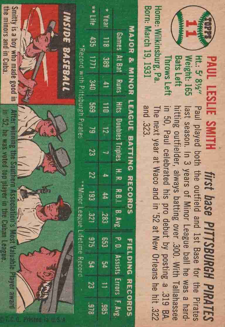 1954 Topps #11 Paul Smith Pirates