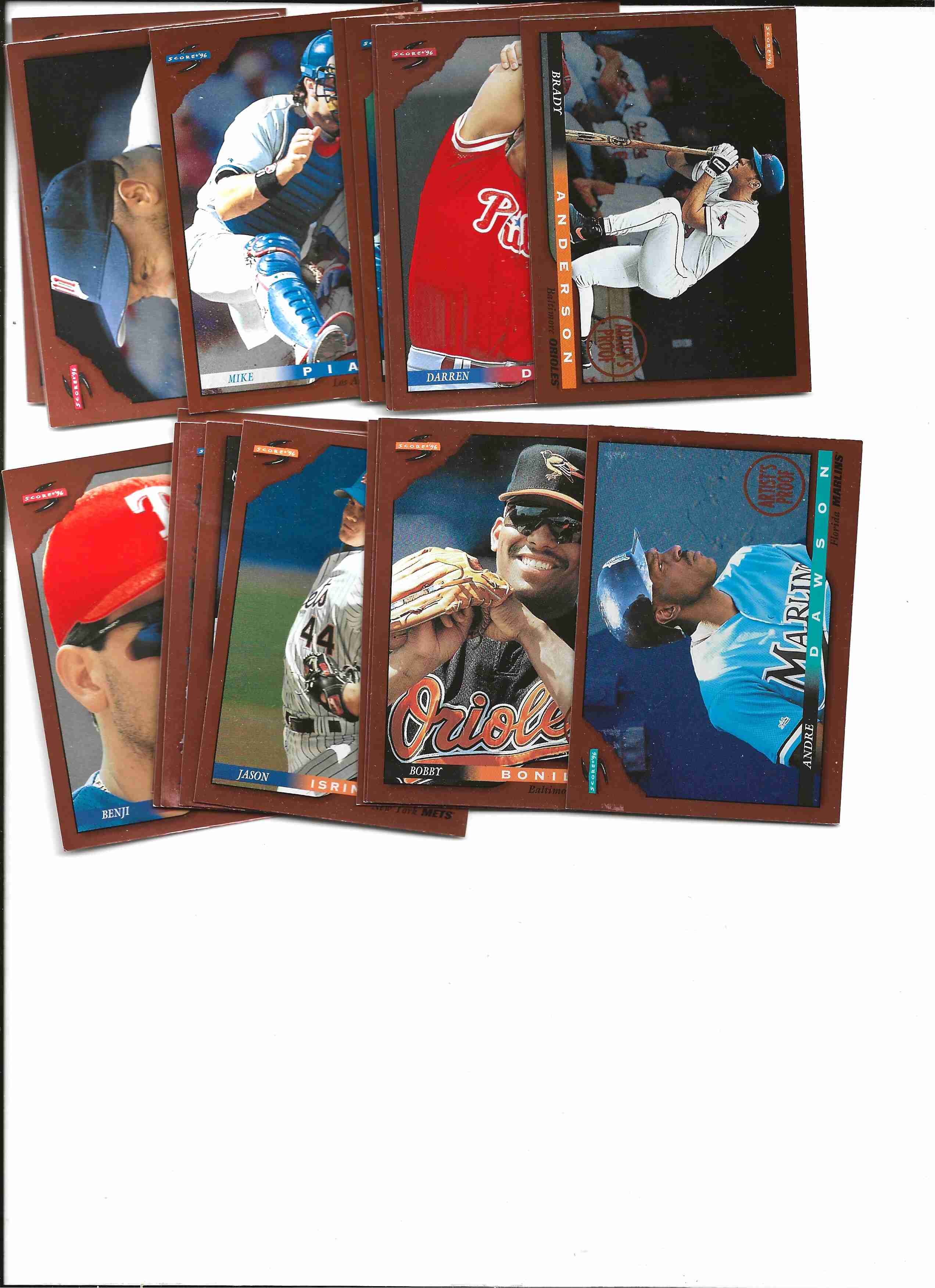 BB 1997 Score Showcase 10-crd lot. book value is 8 times base. Numbers are 85 233 346 398 419 446 462 515 531 533. BB 1996 Score Dugout Artist Proof Closeout 15-cards. Each series are numbered 1-110. Not sure which cards are series 1 or series 2. I will list the number and the name. 1 Dup. #'s are 3-Klesko, 12-Daulton, 16-Nunnally, 20-Blowers, 32-Hayes, 40-Mcdowell, 44-Dawson, 56-Anderson, 64-Veras, 74-Aguilera, 82-Isringhausen, 92-Gill, 95-Bonilla, 95-Dup, 109-Rivera. BB 1999 Ultra Gold Medallion 15-card lot #6G-199G. Gold Medallion numbers are 6G, 26G, 48G, 50G, 51G, 95G, 102G, 144G, 153G, 159G, 164G, 165G, 188G, 196G, 199G. There is a 16th card, a dup, I am sending that along free.. And a 1992 Pinnacle Rookies Sealed 30-card boxed set