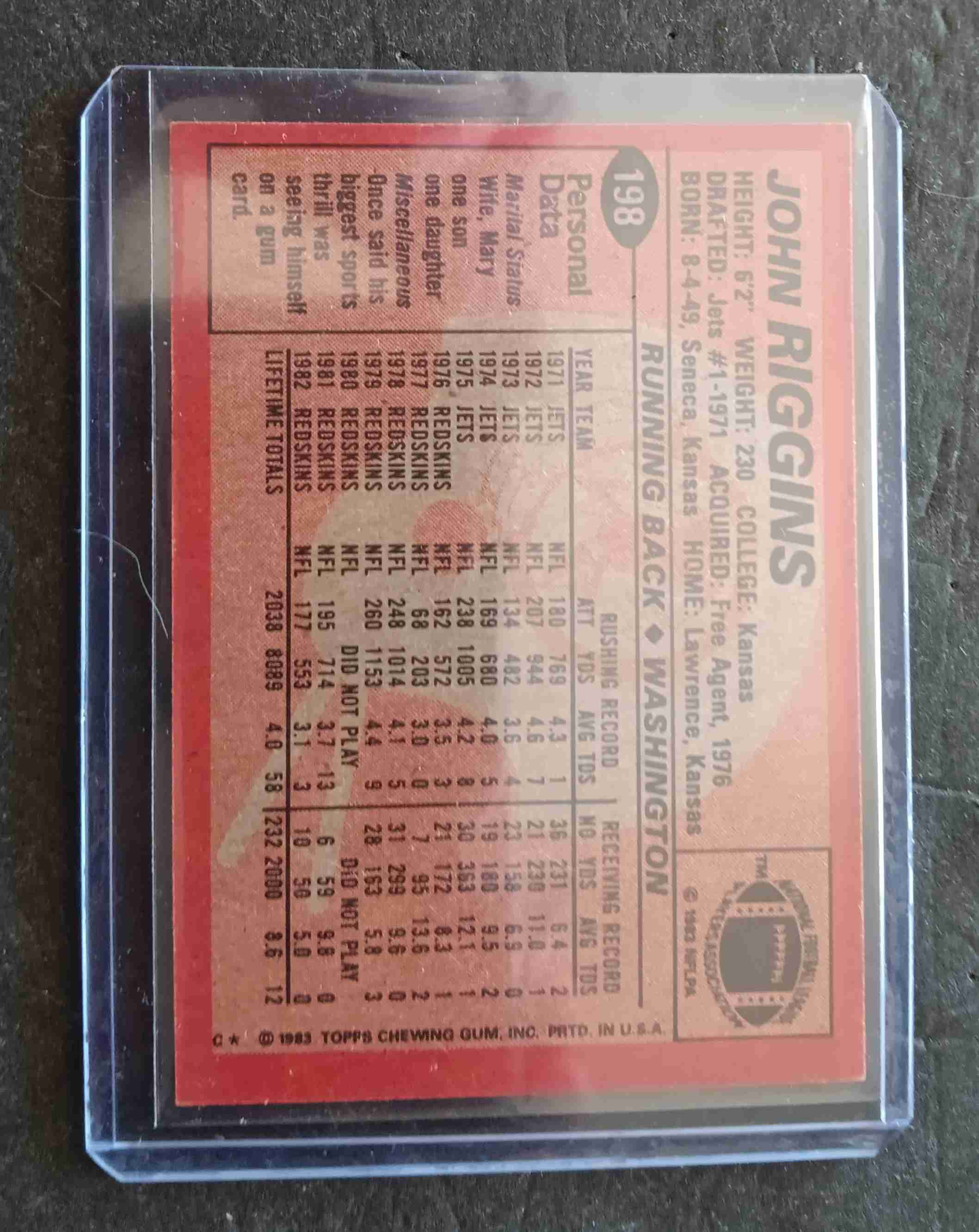 This auction is for a 1983 Topps Football John Riggins.Card is number #198,and is in NM condition.Thanks for looking.