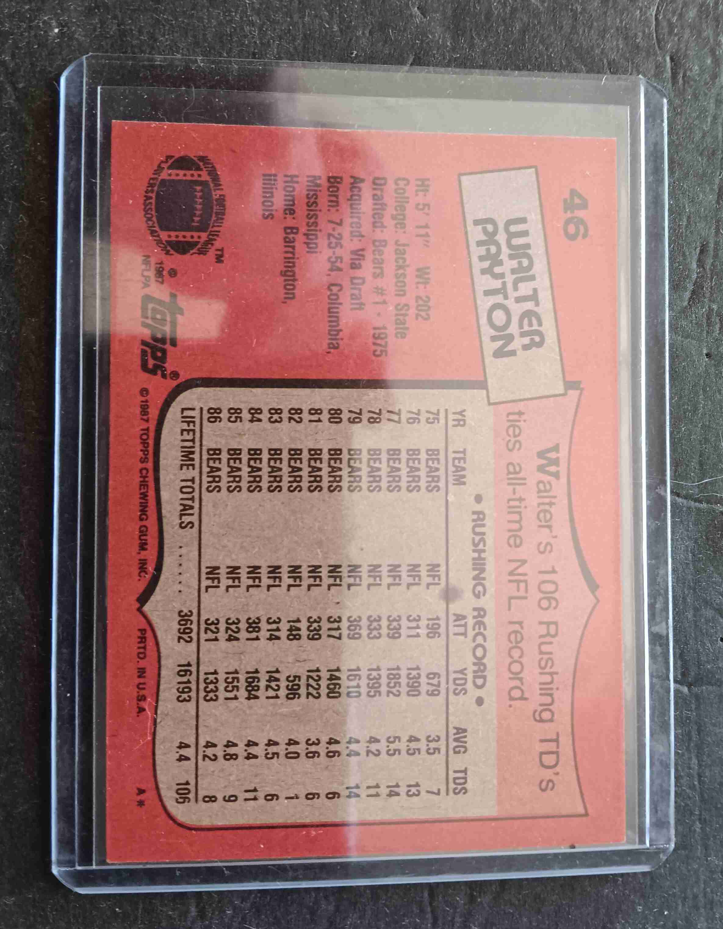 This auction is for a 1987 Topps Walter Payton.Card is number #46,and is in EX condition.Thanks for looking.