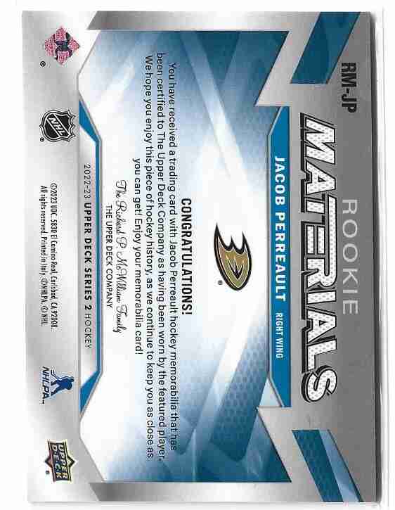 2022/23 UD 2 JACOB PERREAULT ROOKIE MATERIALS 3 COLOR RM-JP
