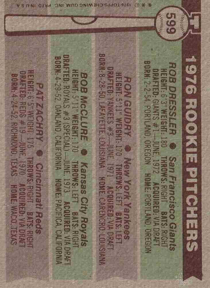 1976 Topps #599 Rookie Pitchers Guidry-Zachry ++