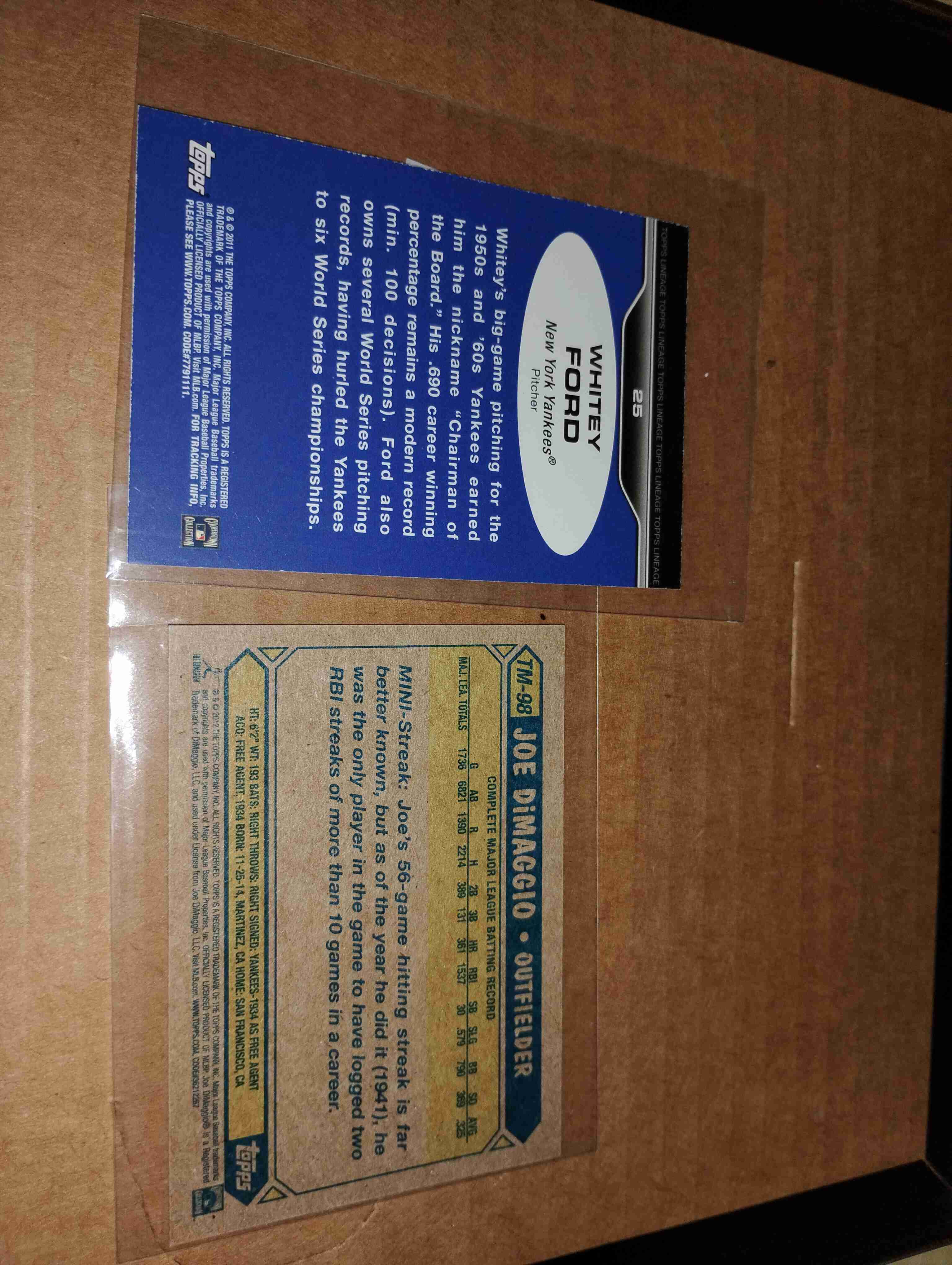 CARDS ARE PICTURED IN PLASTIC SLEEVES IN EXCELLENT CONDITION.WHITEY FORD IS A 2012 TOPPS LINEAGE.2 TOPPS MINI CARDS WILL BE ADDED TO THE WINNING BID.