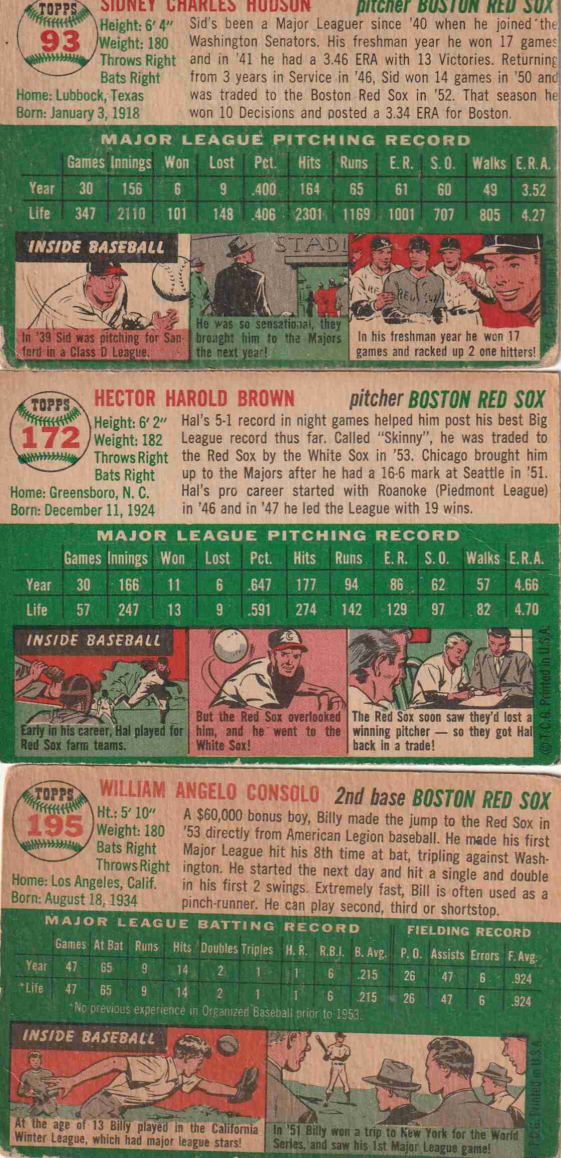 3-1954 Topps Red Sox #'s 93 172 195 (lower grade)