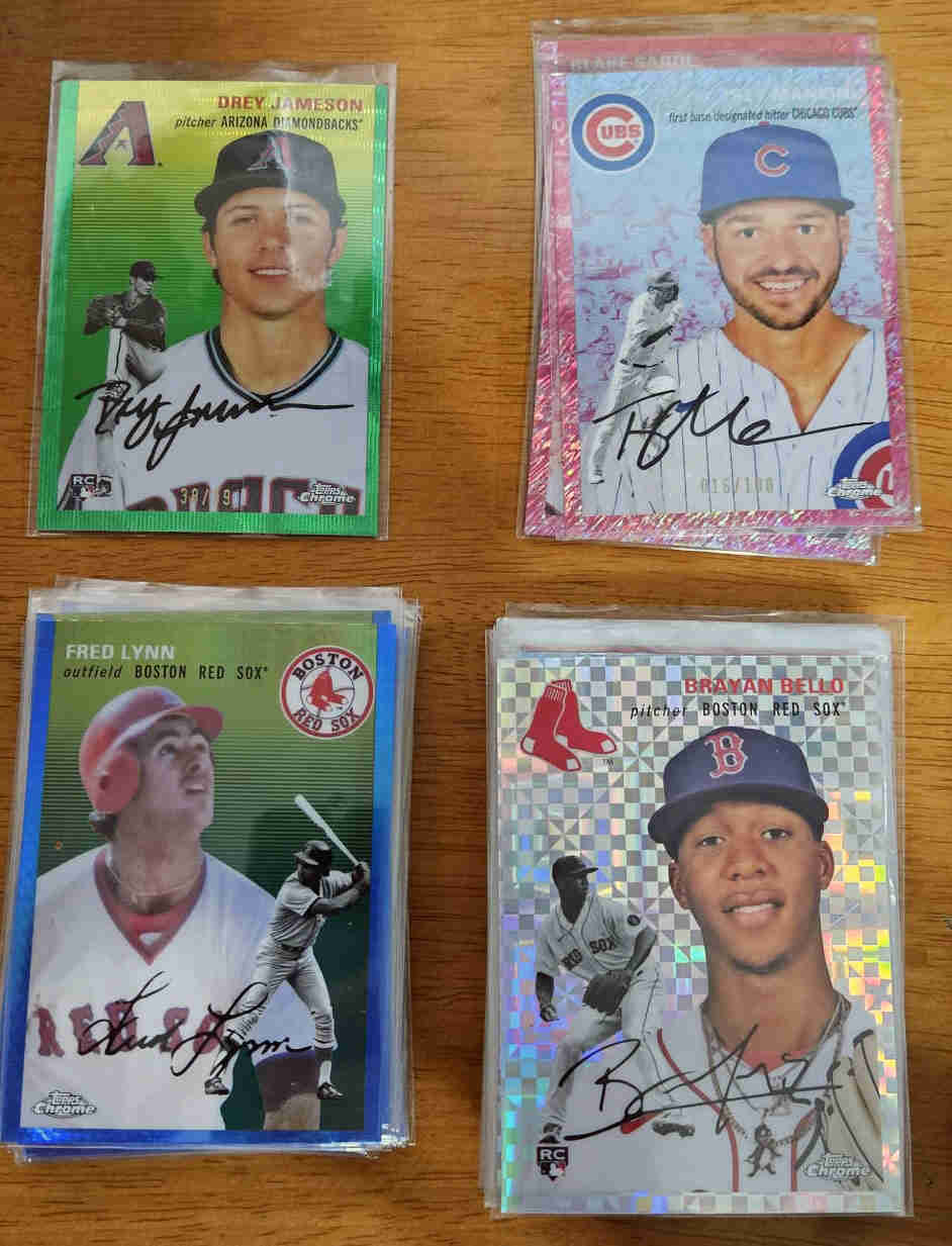 100 card lot of refractors and prisms from the awesome 2023 Topps Chrome Platinum Anniversary set which was released in 2024. This lot is filled with RCs, All-stars and even a few Hall of Famers.