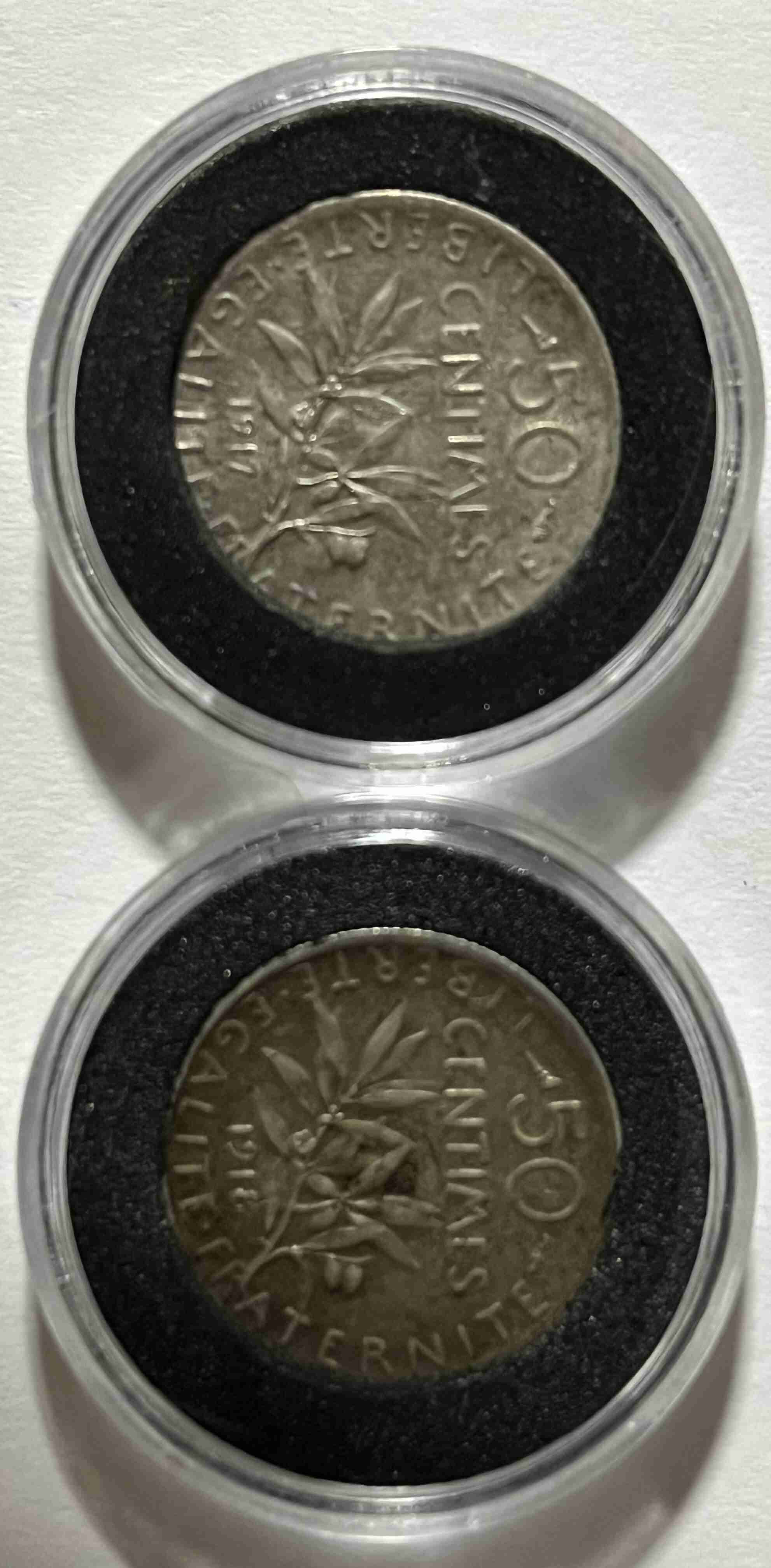 1917 & 1918 France 50 Centimes. About the size of a dime. 83.5% Silver. Winning Bidder receives a free gift.