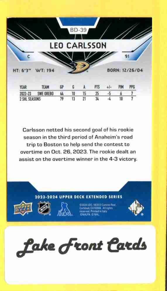 Leo Carlsson #BD-39 2023 Upper Deck Black Diamond Retro
