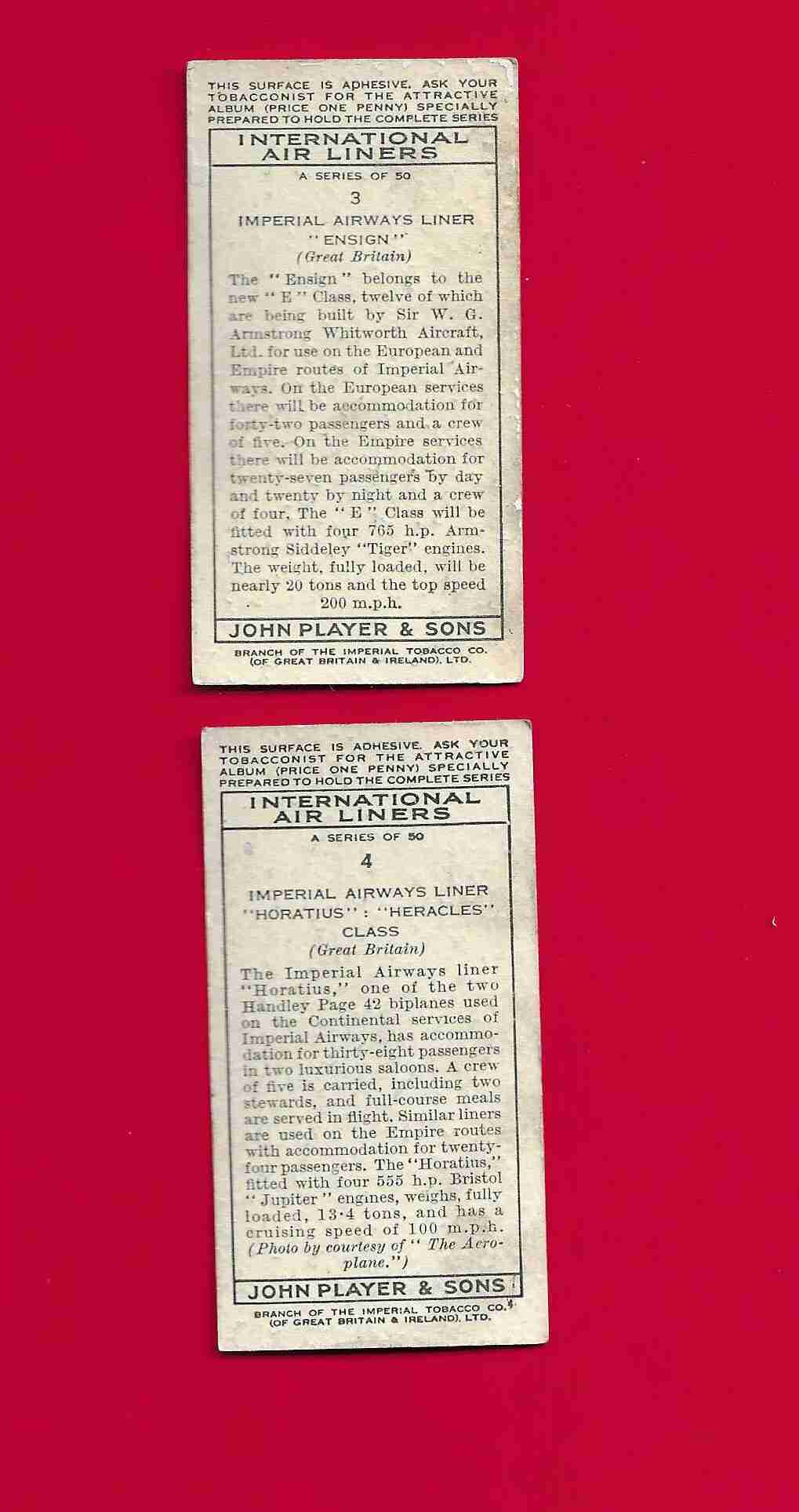 1936 PLAYER'S CIGARETTES INTERNATIONAL AIRLINERS- #'s 3 & 4