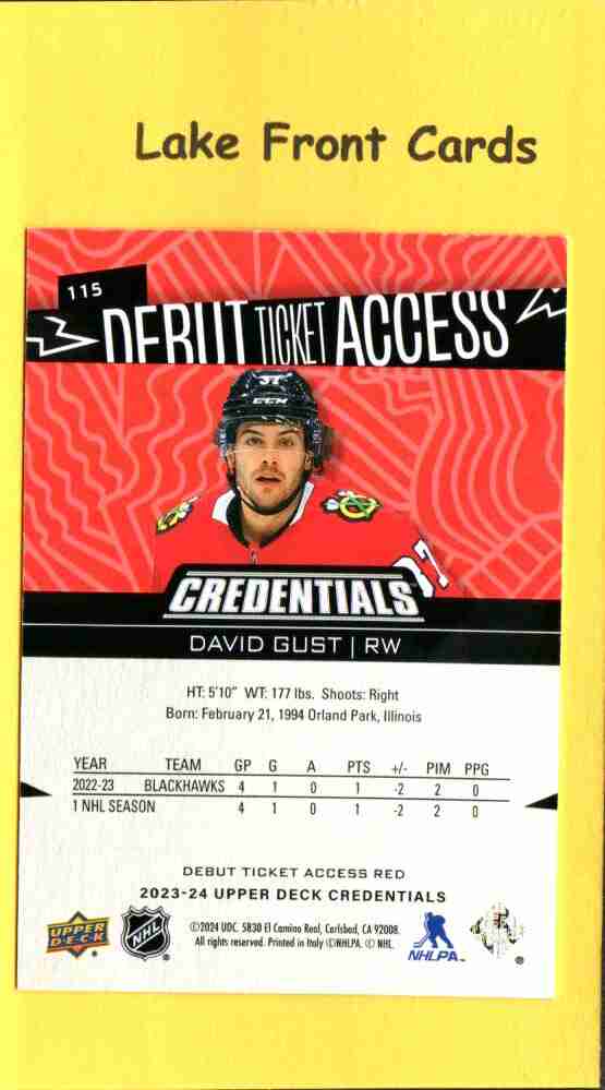 David Gust [Red] #115 – 2023 Upper Deck Credentials (126/349)