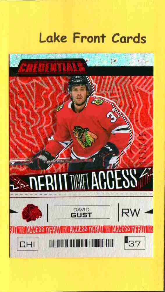 2023 Upper Deck Credentials David Gust #115 Red parallel, serial numbered 126/349. Clean, modern design from the Credentials set with limited numbering, making it a solid pickup for collectors of short-printed NHL cards. Card shown is the exact card you’ll receive.