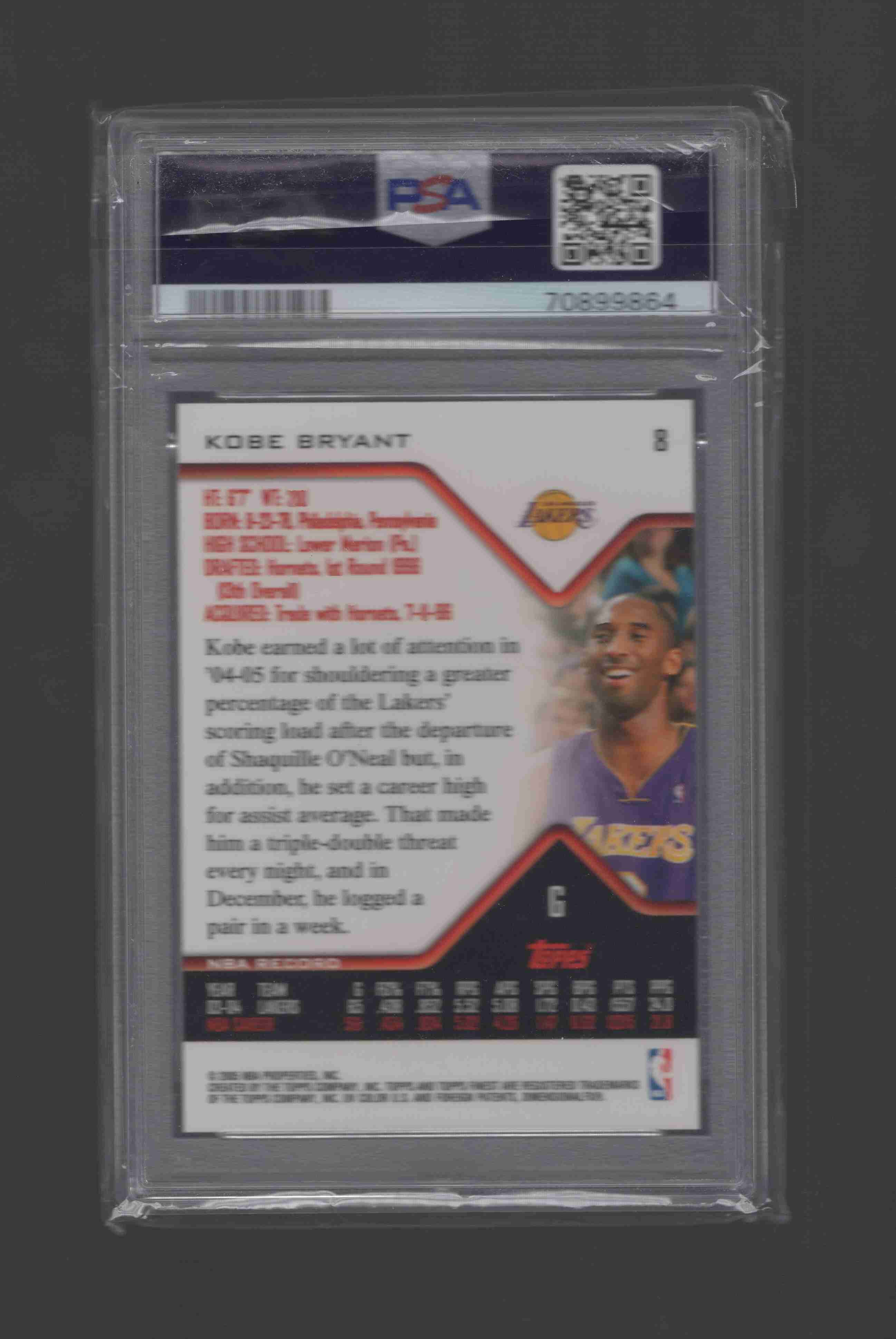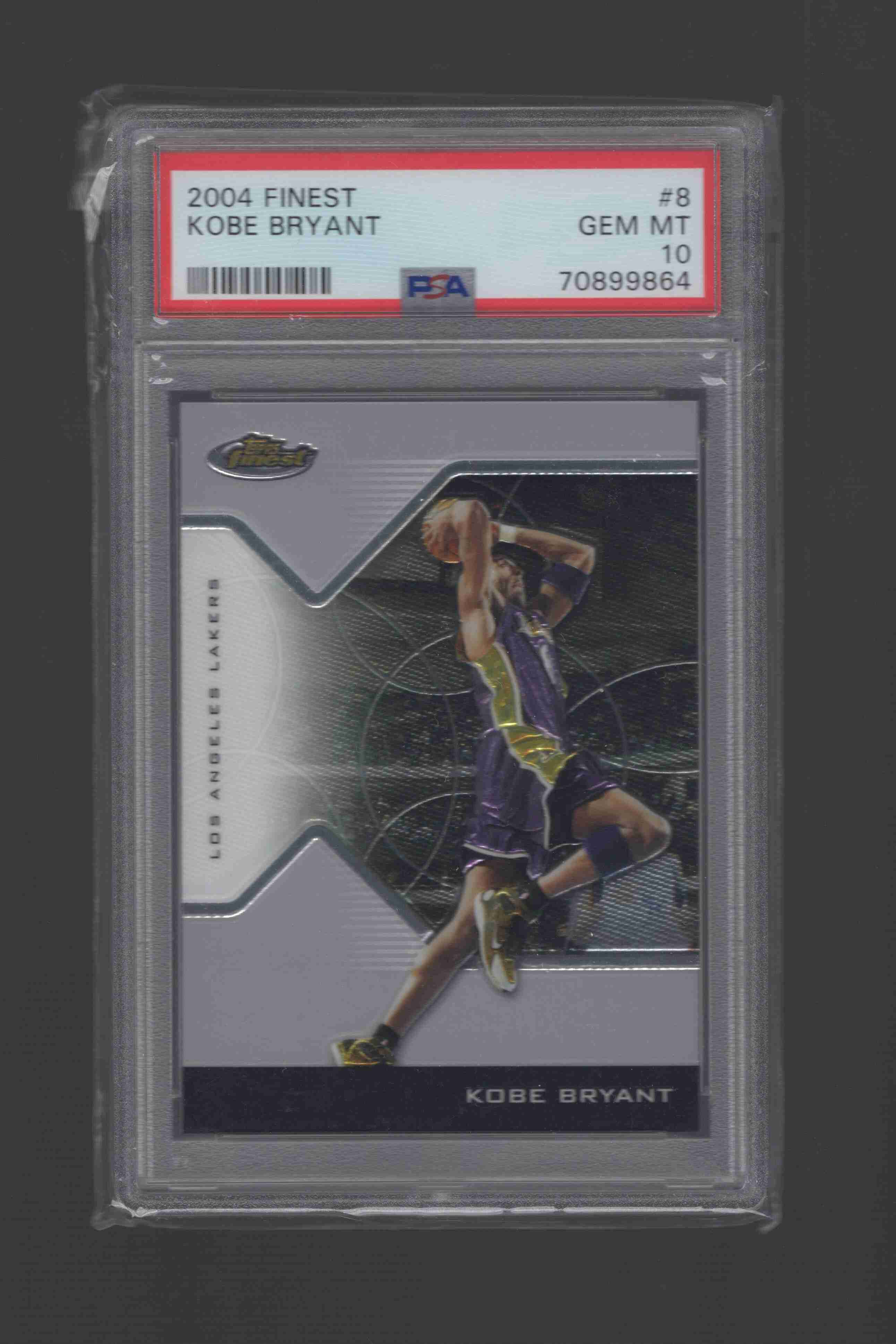 Kobe Bryant 2004 Topps Finest #8. Graded gem mint 10 by PSA. Card will be shipped bubble mailer with tracking. I have other items listed and a minimal combined shipping rate if trying to manage shipping costs.