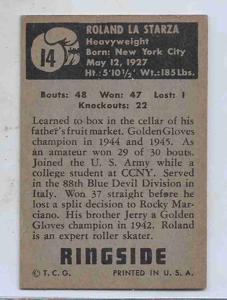 1951 Ringside #14 Roland LaStarza Heavyweight