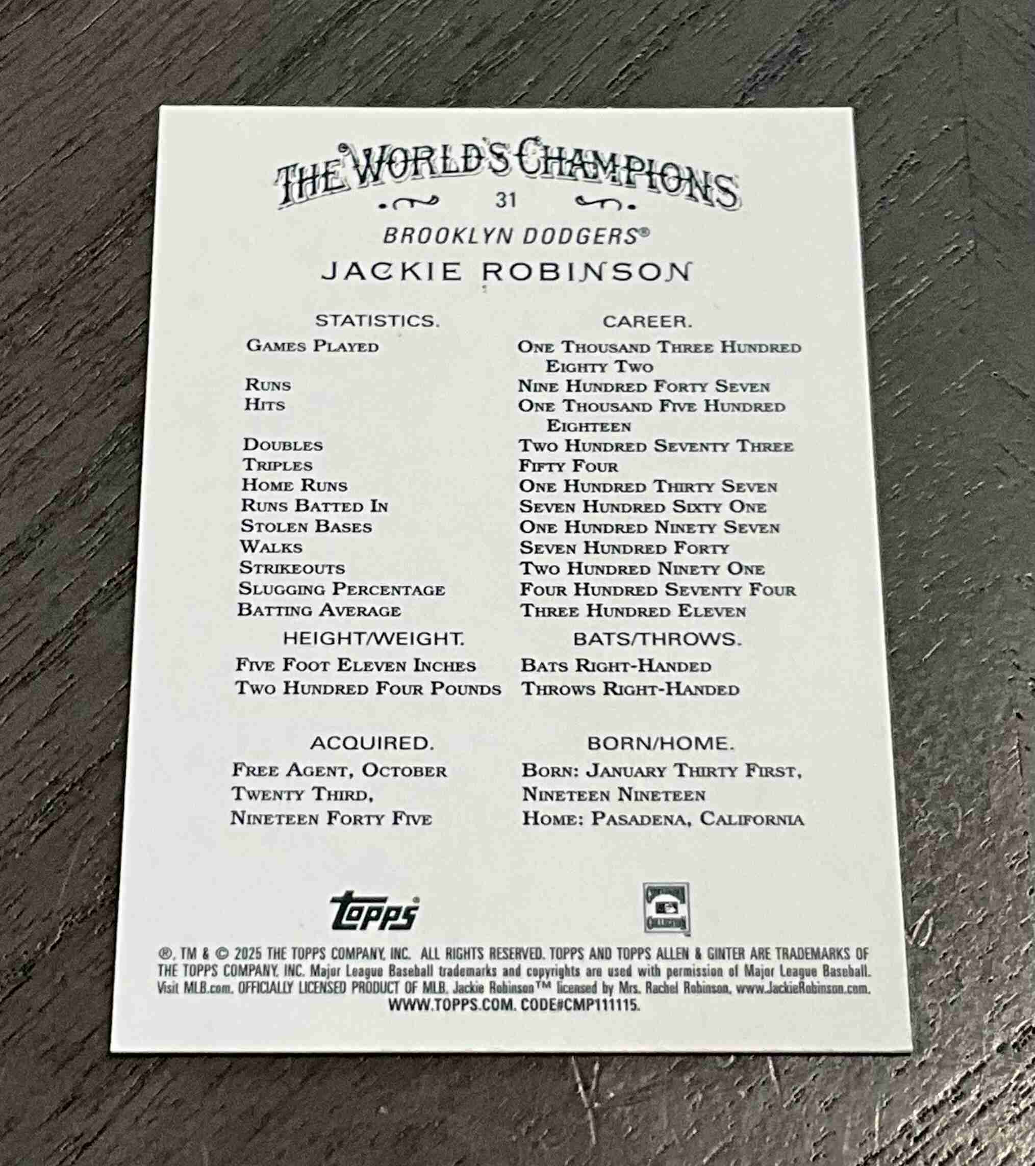 Jackie Robinson Silver Portrait 2025 Allen & Ginter Dodgers
