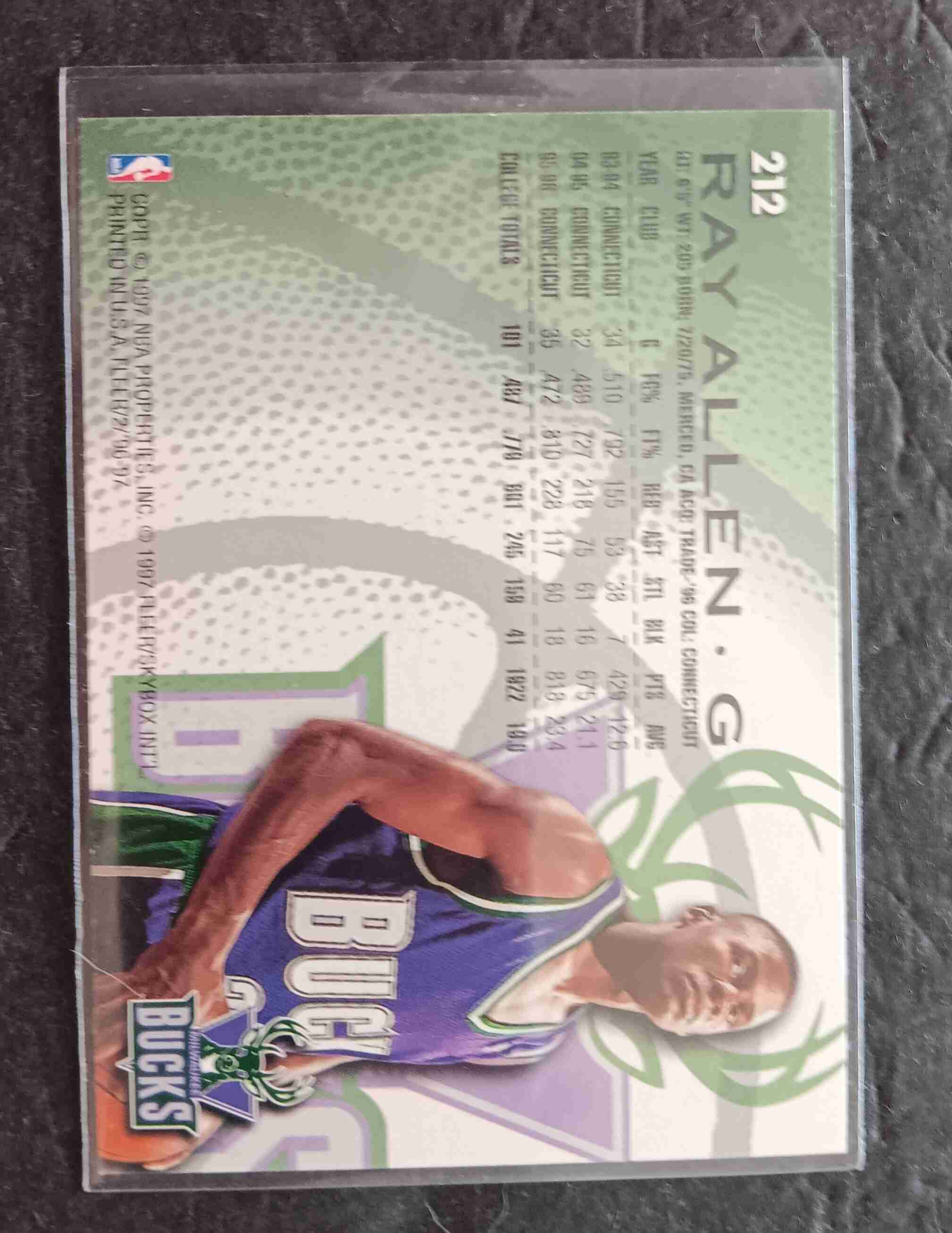 This auction is for a 1996-97 Fleer Ray Allen Rookie.Card is number #212,and is in EX/NM condition.Thanks for looking.