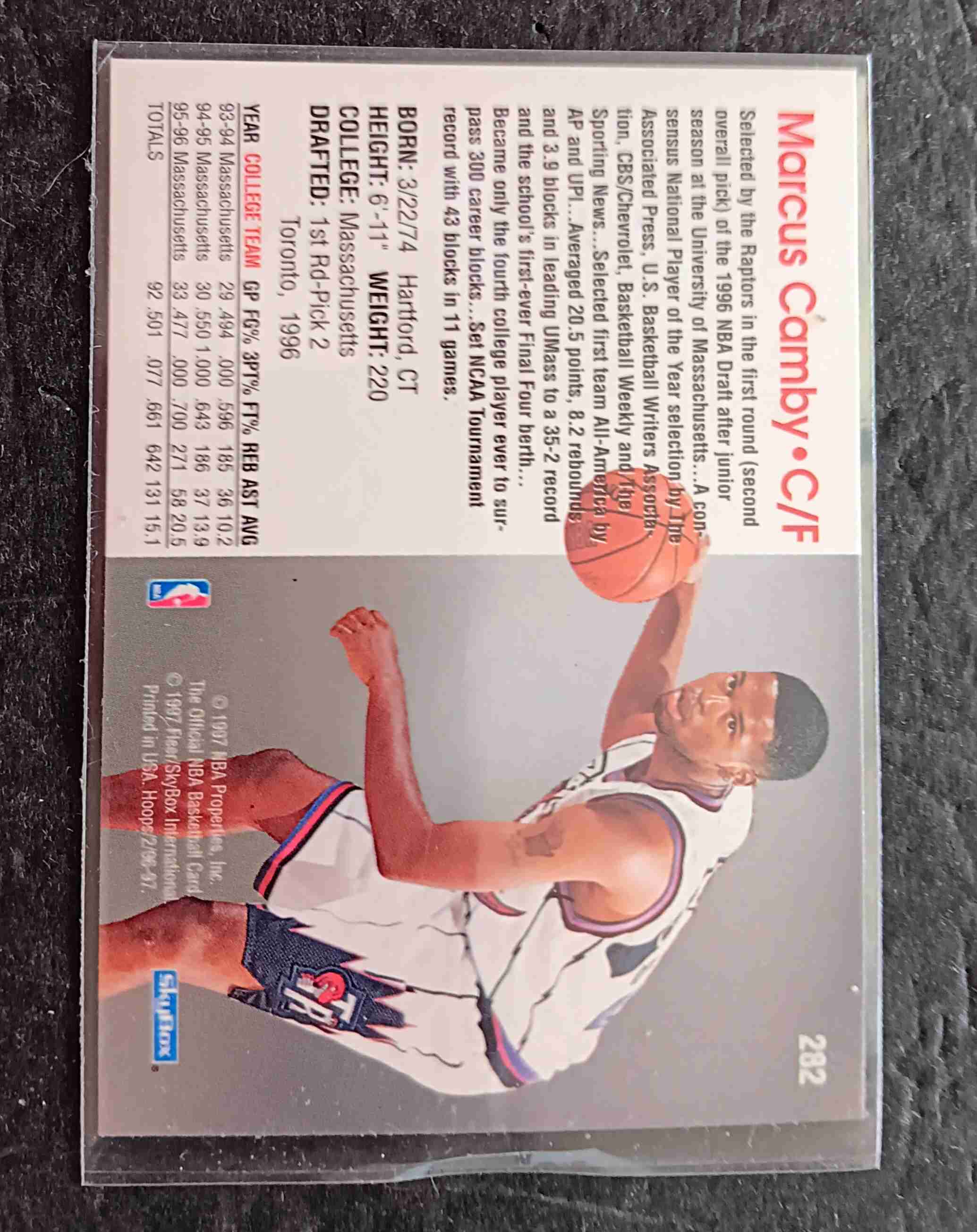 This auction is for a 1996-97 Hoops Marcus Camby Rookie.Card is number #282,and is in NM condition.Thanks for looking.