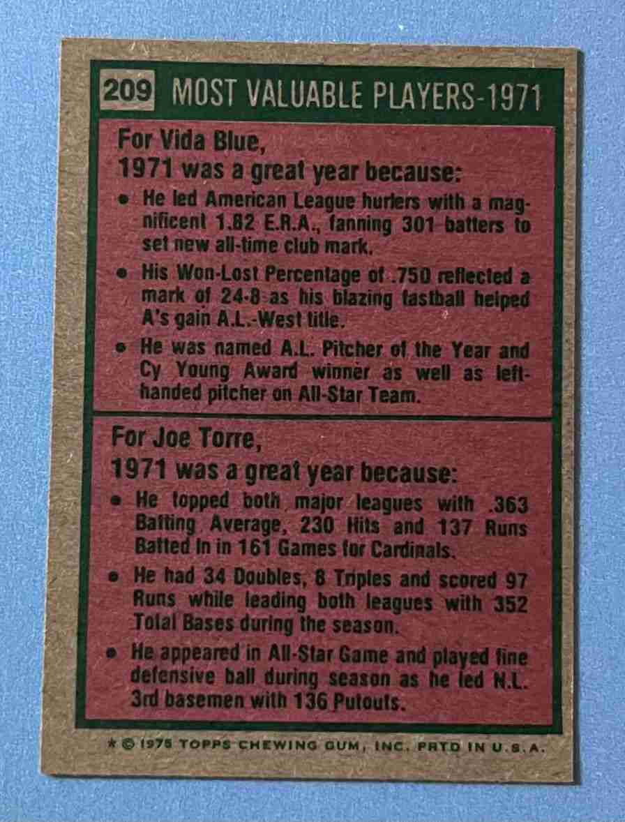 75 ToppsMini 1971 MVPS #209 HOFx1!