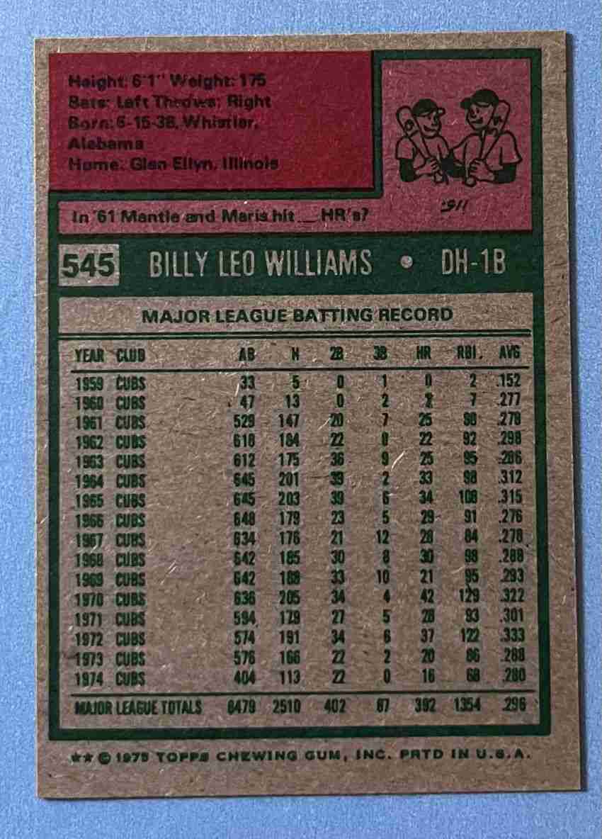 75 ToppsMini BILLY WILLIAMS #545 HOF!