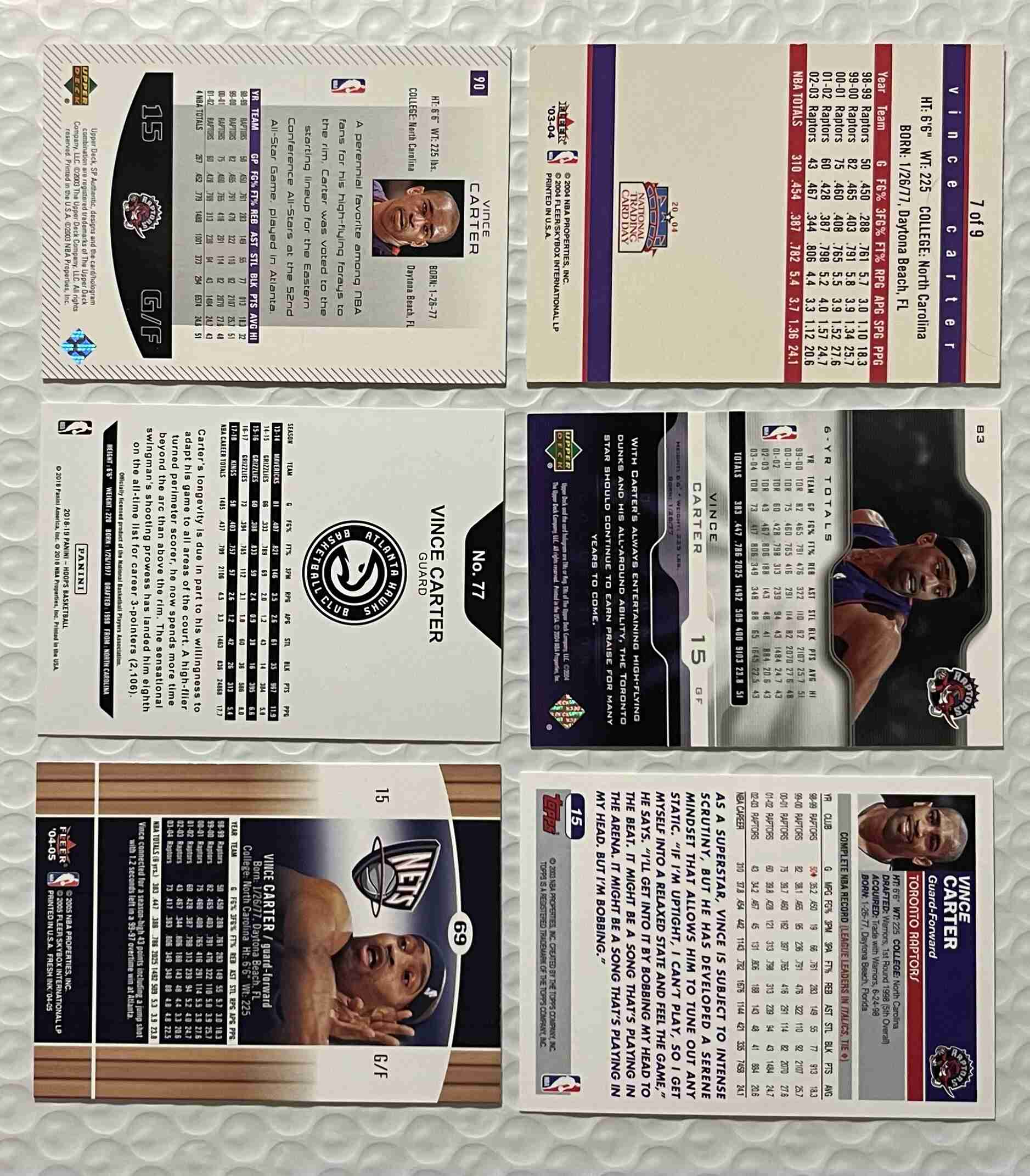 This auction is of ( 6 ) Vince Carter cards. Cards are Nrmt condition. Look at the pics and judge for yourself. If any questions please feel free to contact me. Thank you for looking at my auctions.