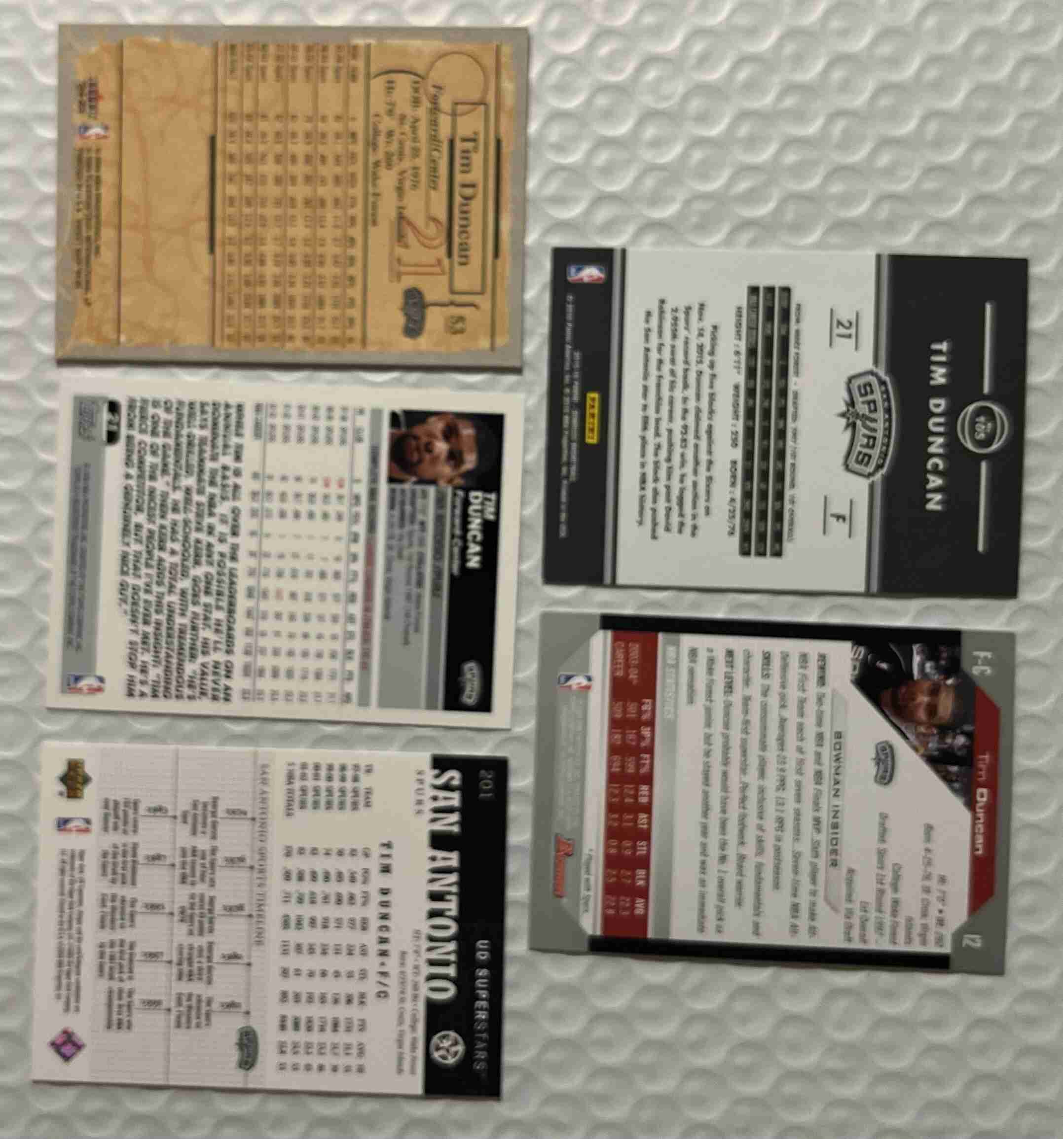 This auction is of ( 5 ) Tim Duncan cards. Cards are Nrmt condition. Look at the pics and judge for yourself. If any questions please feel free to contact me. Thank you for looking at my auctions.