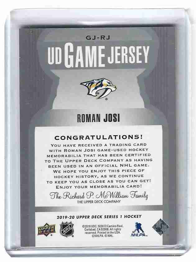 2019/20 UD 1 ROMAN JOSI GAME USED JERSEY GJ-RJ