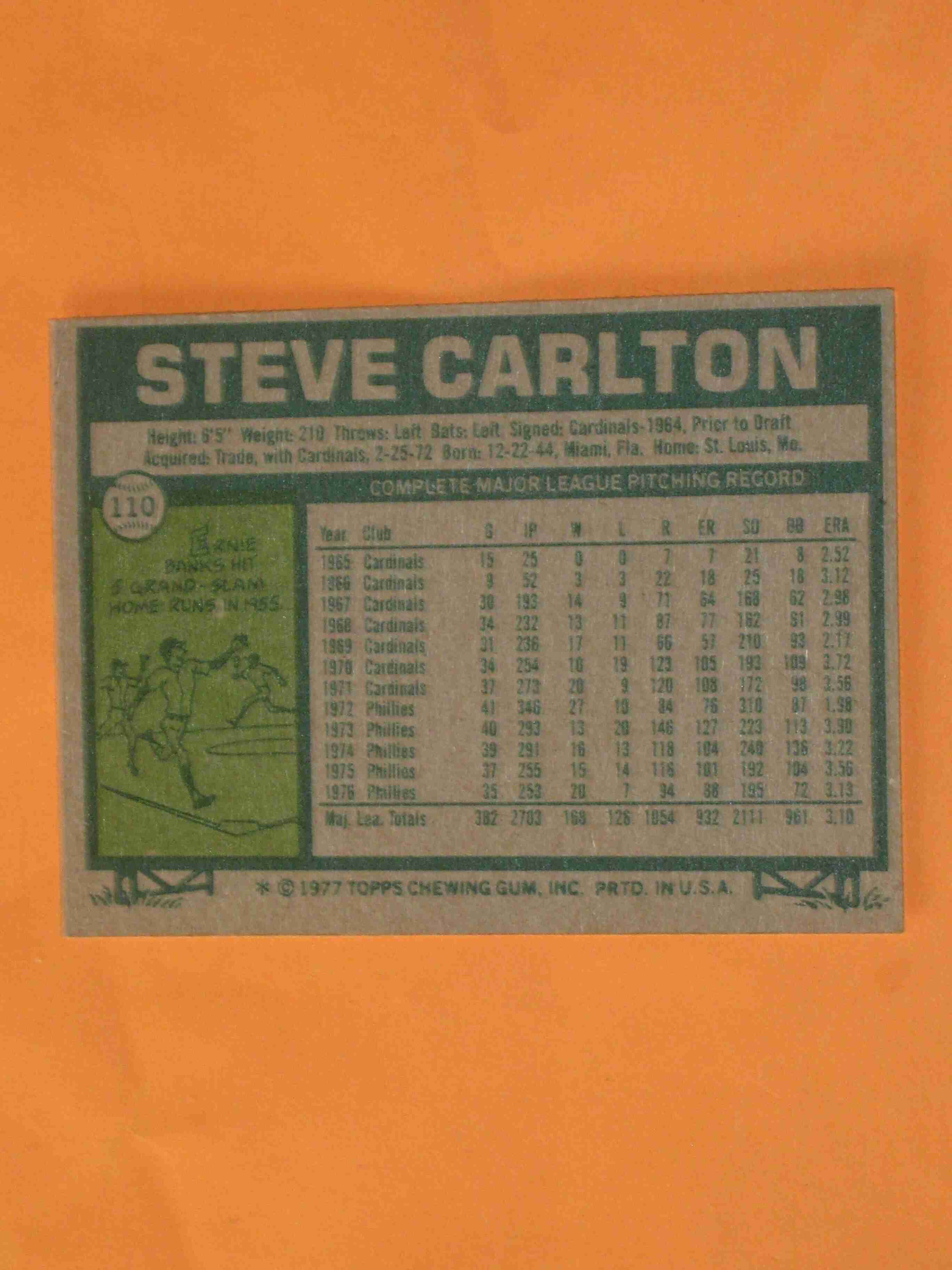 1977 Topps Steve Carlton #110 Philadelphia Phillies NICE