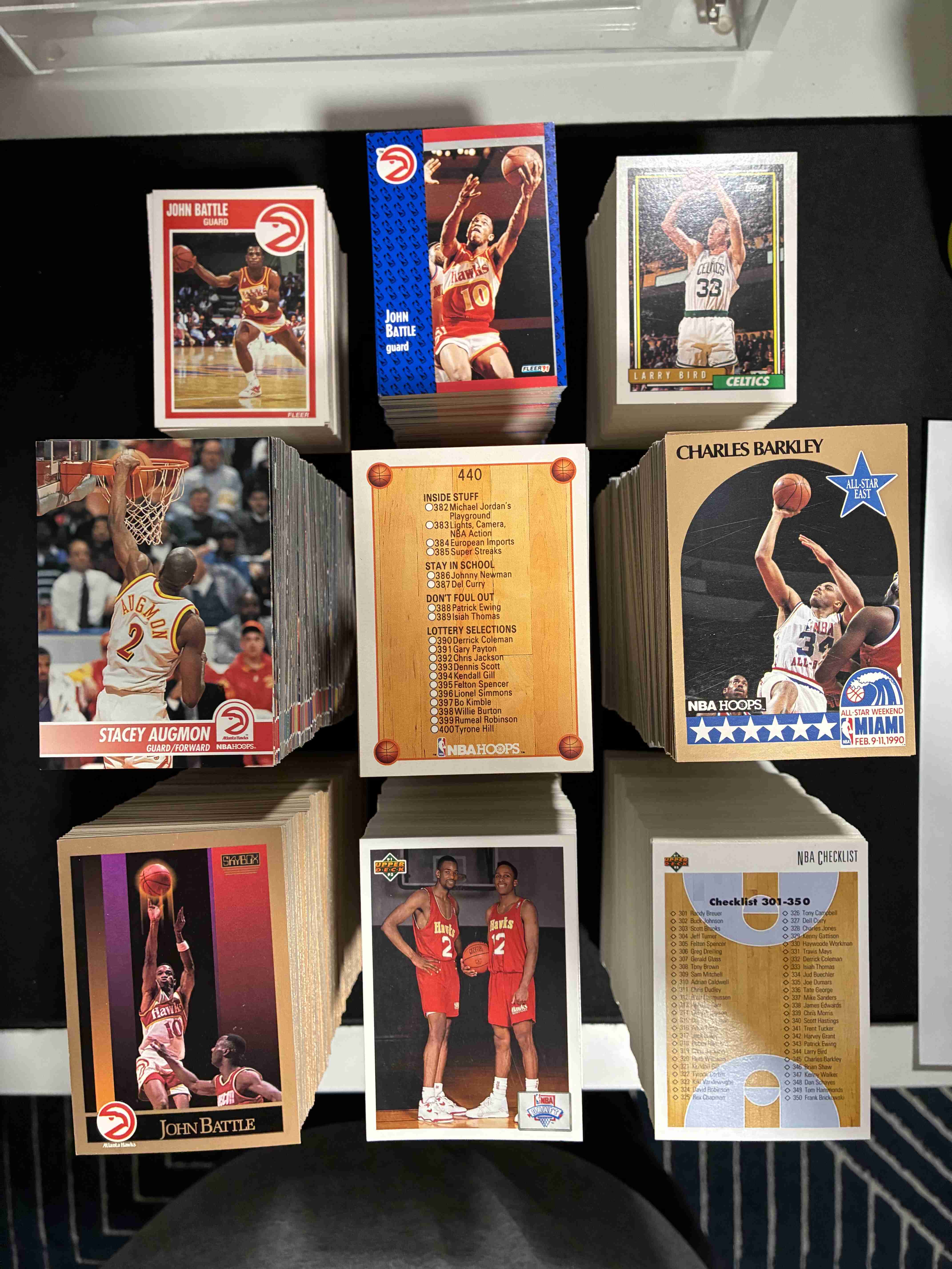 You are bidding on a lot of 9 complete sets of NBA Cards from 1989-1995. These include: 89-90 Fleer (#1-168), x2 90-91 Hoops (#1-440), 91-92 Fleer (#1-240), 92-93 Topps (#1-198), 94-95 Hoops (#1-450), 90-91 Skybox (#1-423), and x2 91-92 Upper Deck (#1-400). These sets are all hand-collated. Please ask any questions before bidding. THIS ITEM CANNOT BE COMBINED SHIPPING WITH OTHER ITEMS. Thank you.