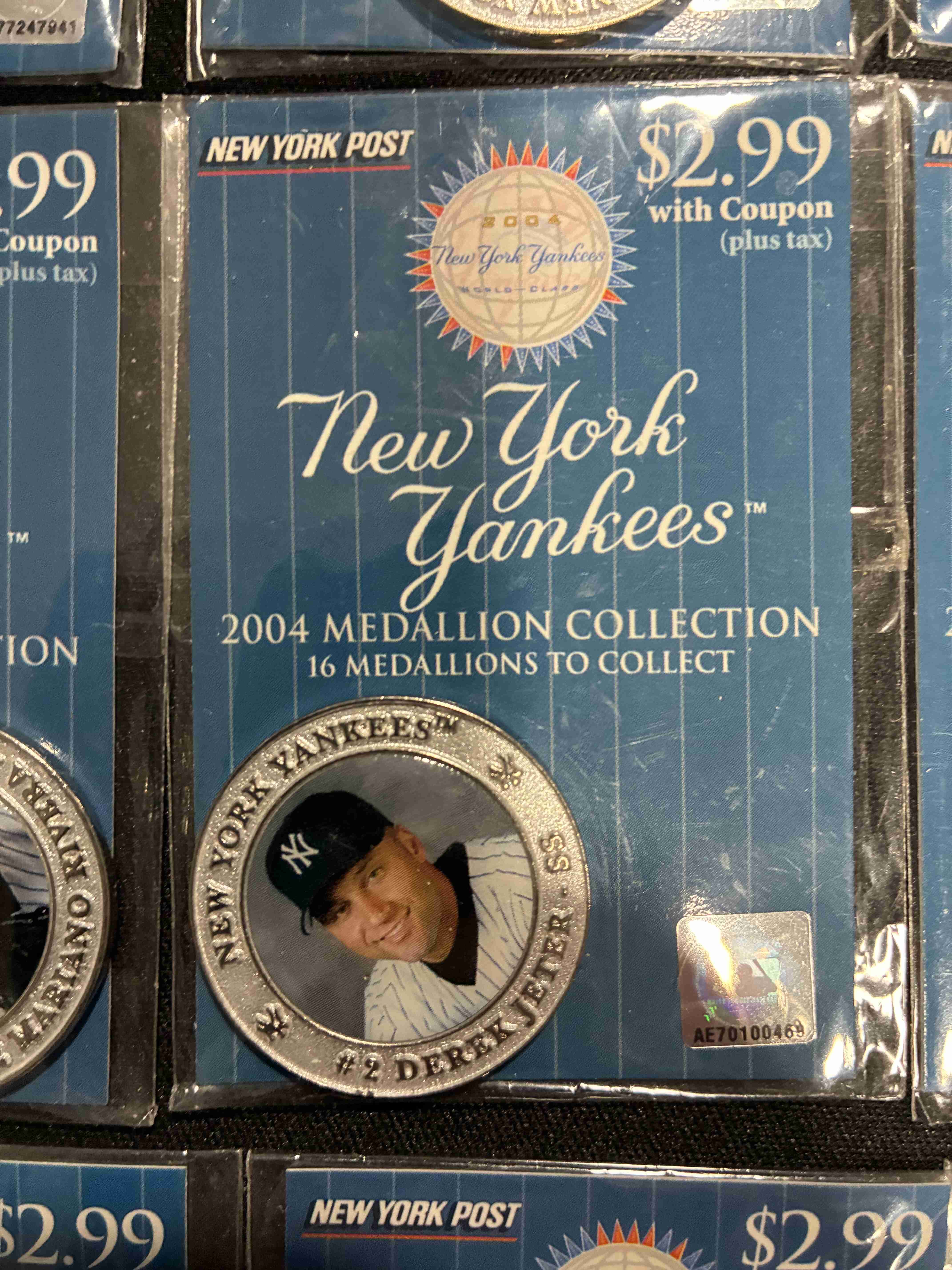 You are bidding on a lot (set?) of 15 2004 Commemorative New York Yankees Coins. This set is loaded with legends, and will include a loose extra bonus coin from the New York Post. This set include Jeter, Rivera, Arod, Posada, and many more. Please ask any questions before bidding.