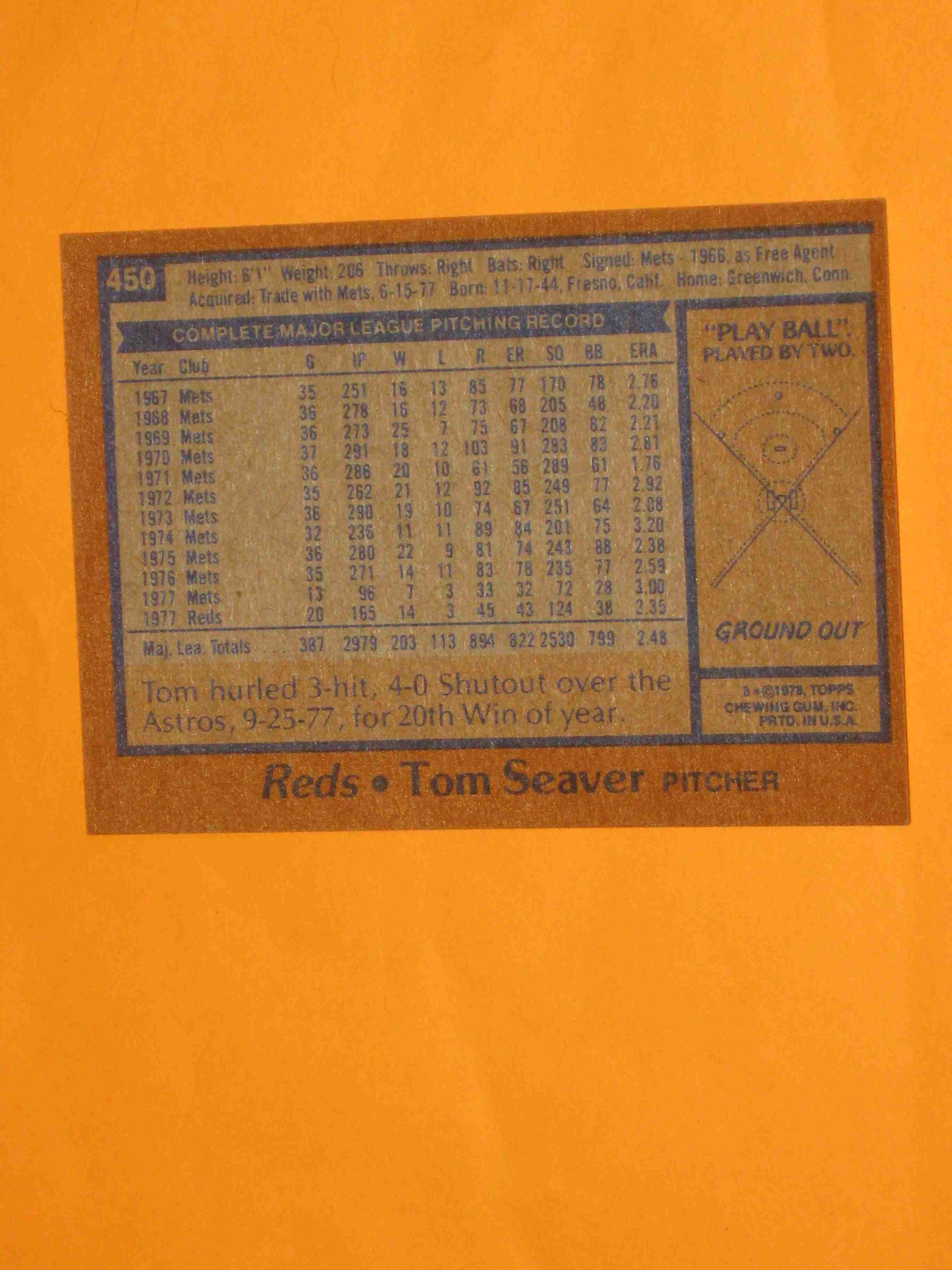 1978 Topps Tom Seaver #450 Cincinnati Reads NICE