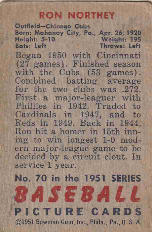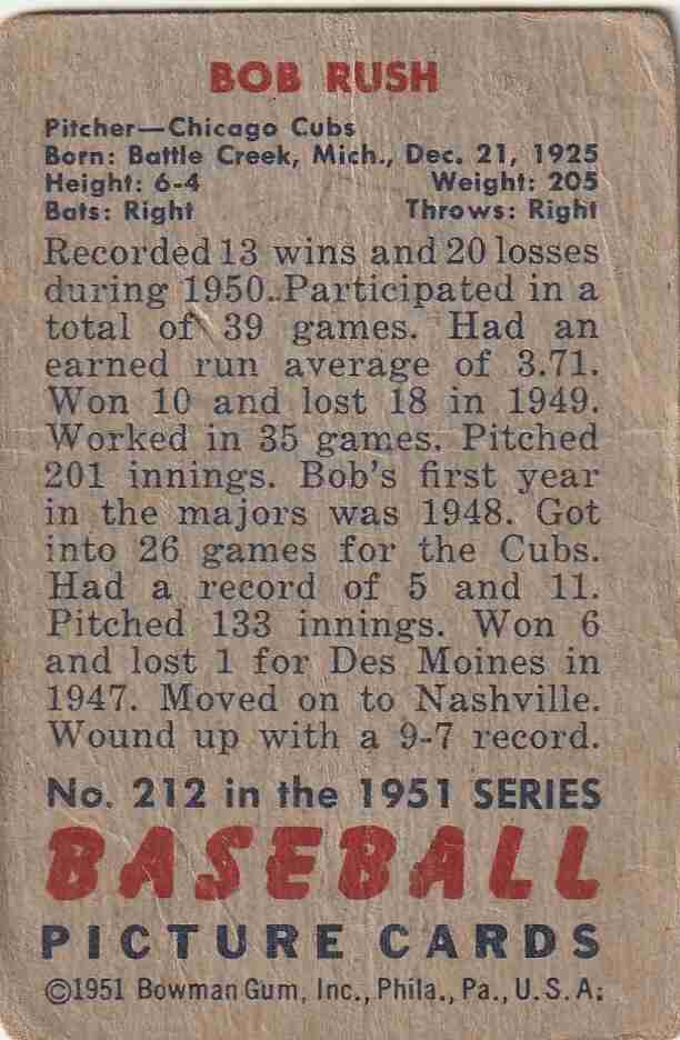 #212 Bob Rush (Fair-Good) Intact #70 Ron Northey (Fair-Good) Intact