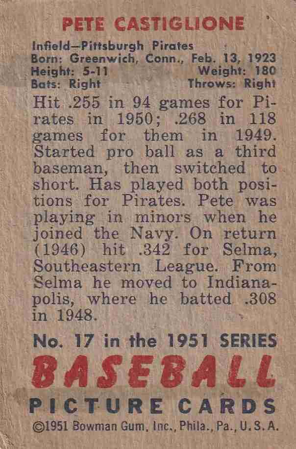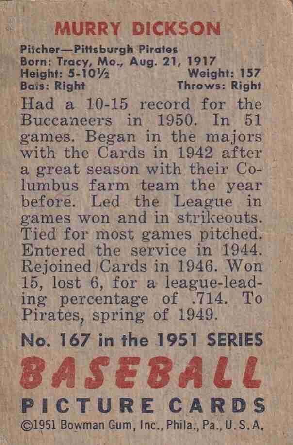 2-1951 Bowman Pirates #'s 17 167 (lower grade)