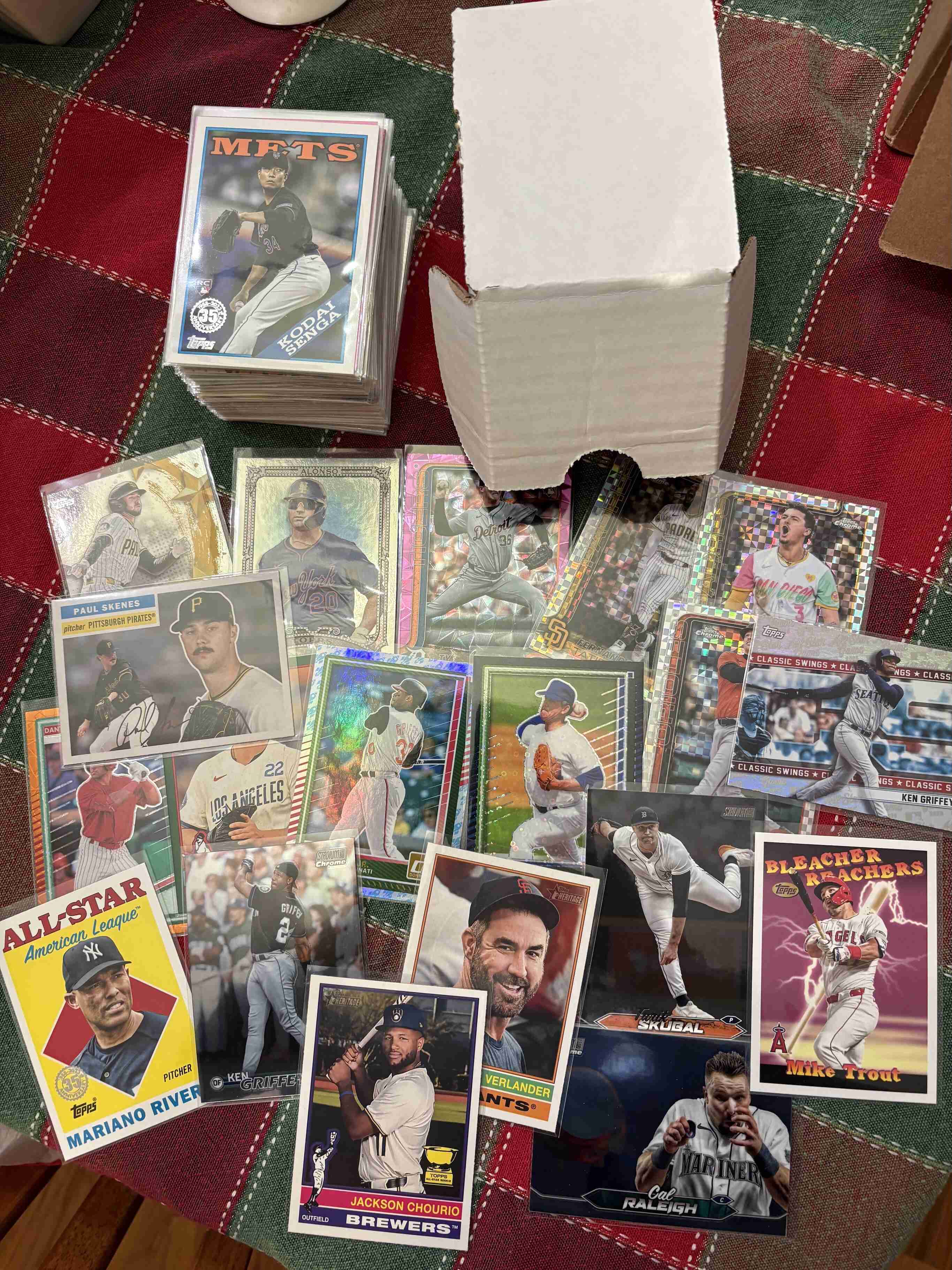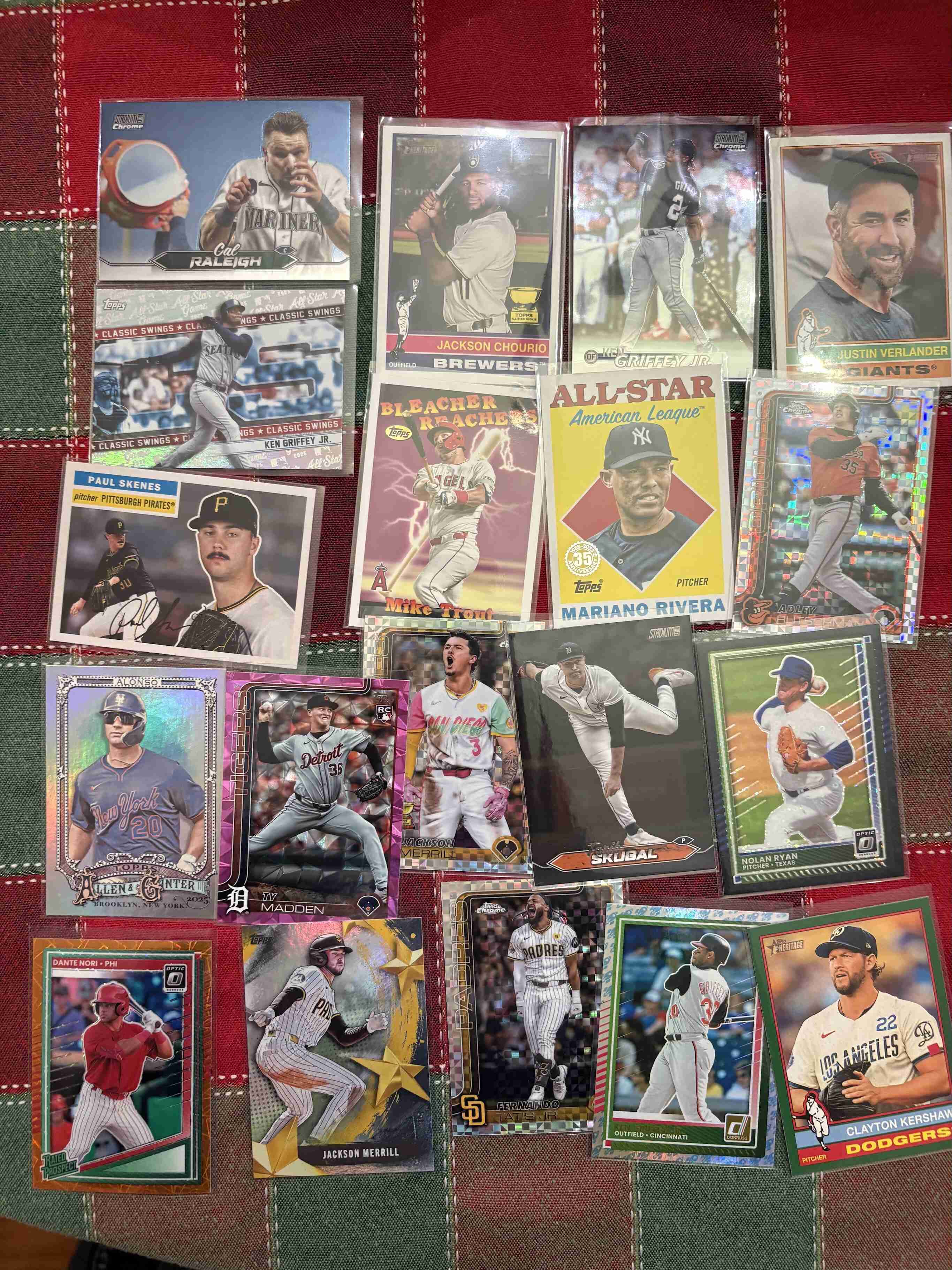 This is for a mixed lot of 100 inserts from various sets. Beautiful looking cards and lots of stars like Paul Skenes, Mike Trout, Jackson Merrill, Cal Raleigh, Tarik Skull, and many more. Cards are all penny sleeved, in a new box and will ship with tracking. Be sure to check out my other auctions. Thank you for looking.