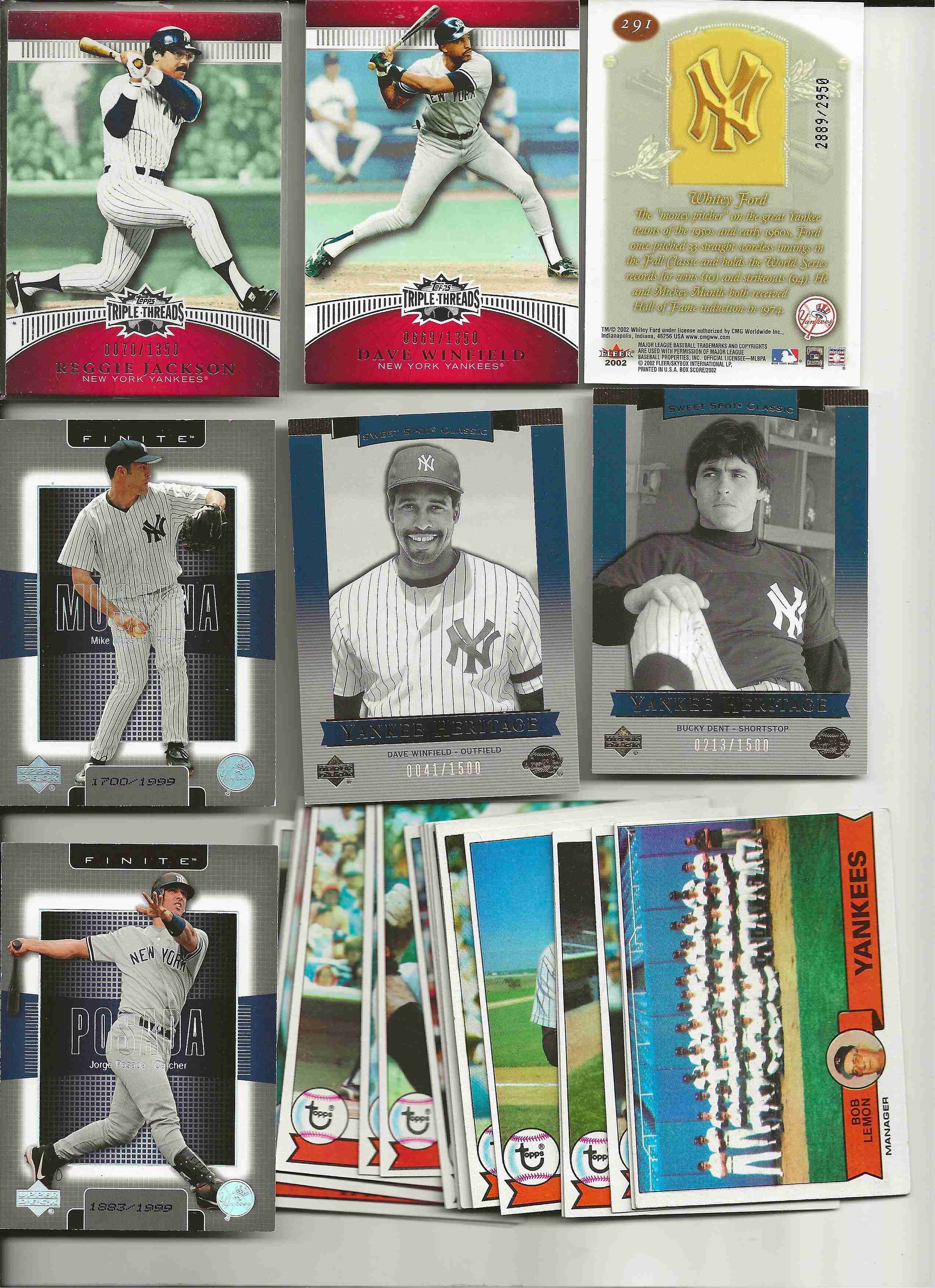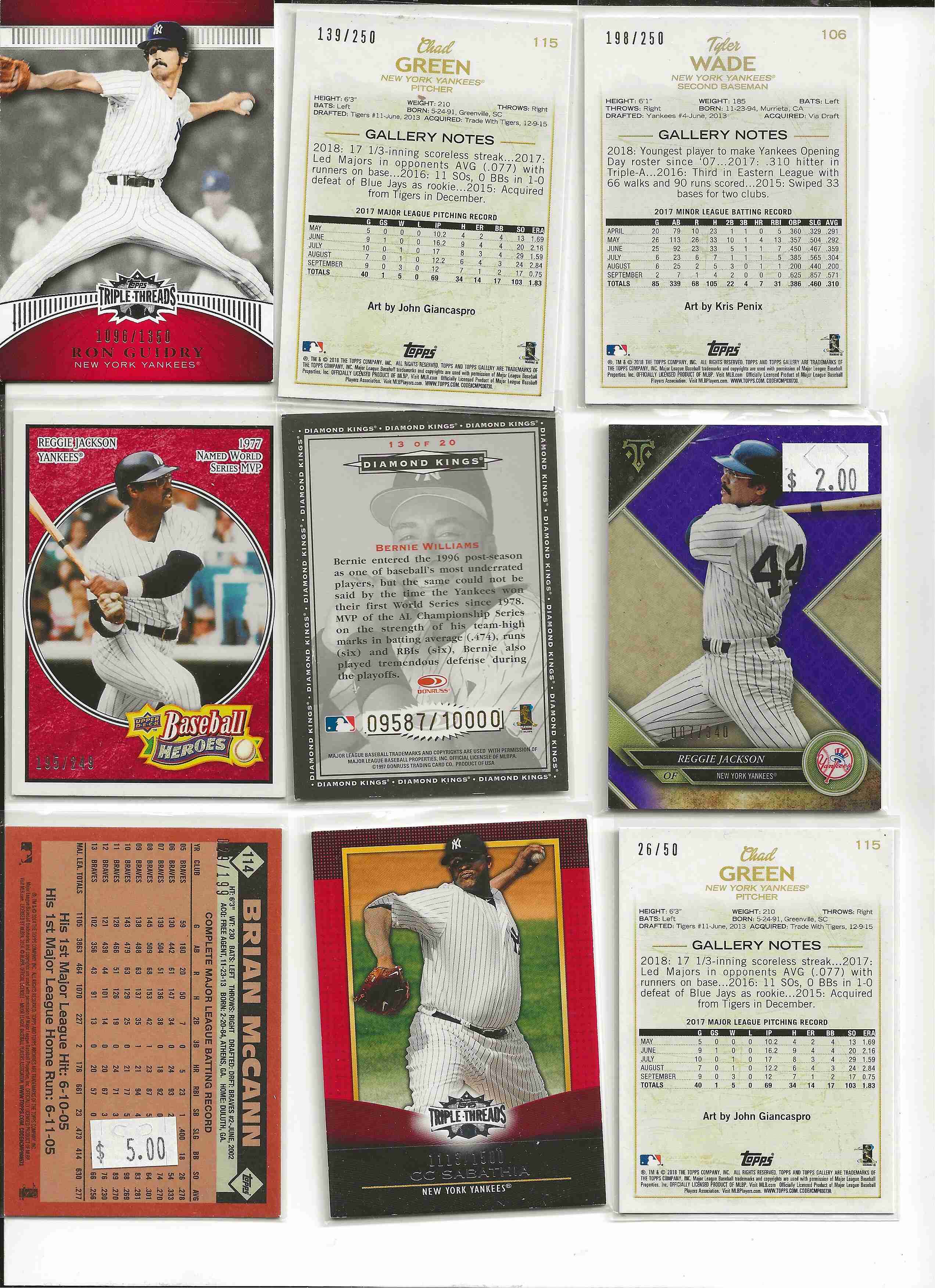 1979 Topps Burger King Team set 23-cards (Jackson, Rivers, White, Pinella, Nettles, Dent, Gossage, John, Tiant, Hunter and more. 16-Serial Numbered cards. Reggie Jacson 195/249. Jackson 007/340. Wage and green 198/250, 139/250. guidry 1096/135/. 1986 Topps McCann #029/199Chad Green (blue Version) #25/50. Whitey Ford 32889/2950and more.