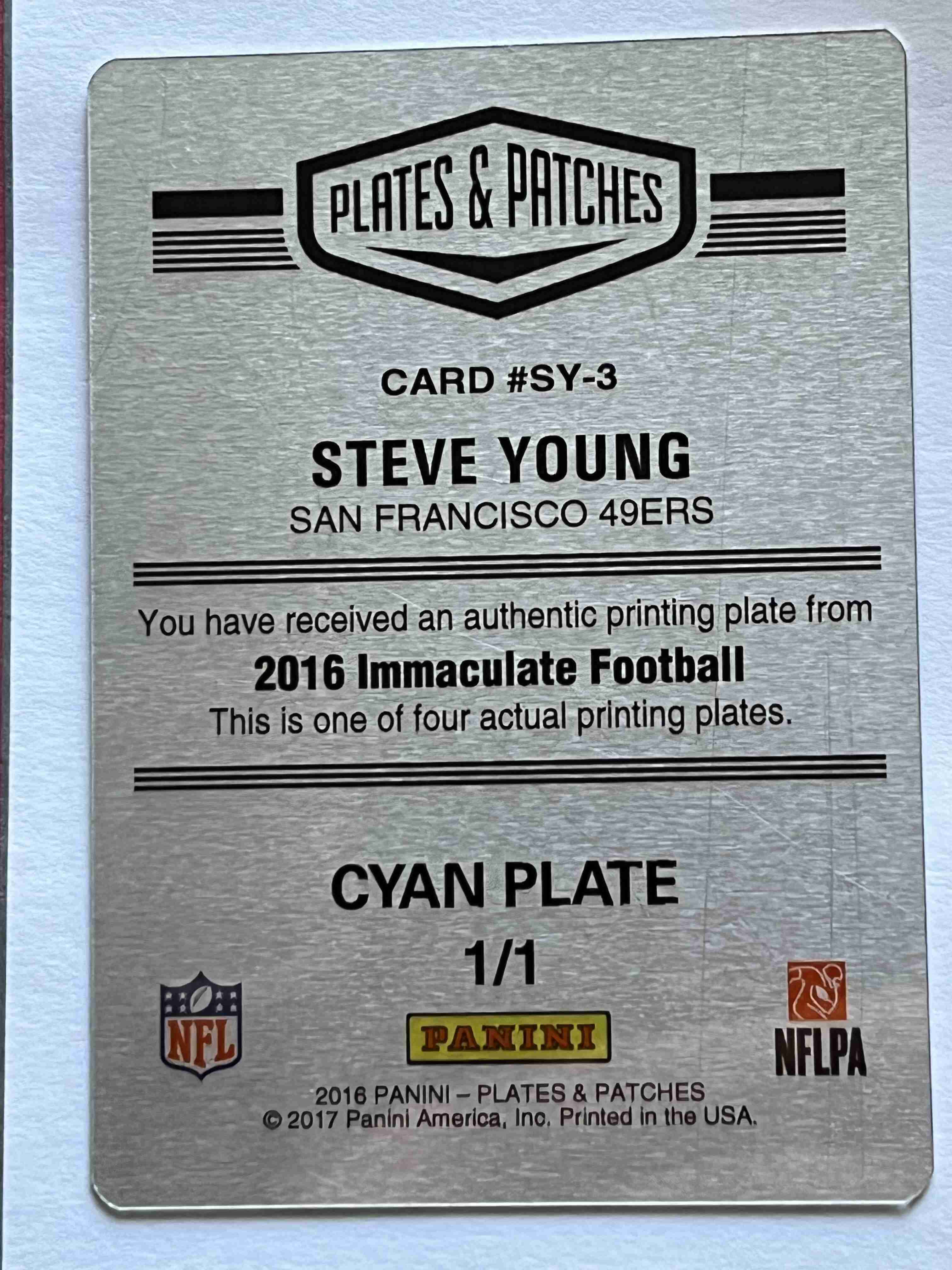 2016 Immaculate Football SY-3 Steve Young Cyan Printing Plate 1/1. Free Shipping Winning bidder receives a free gift.
