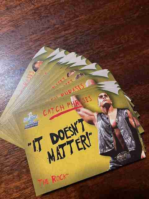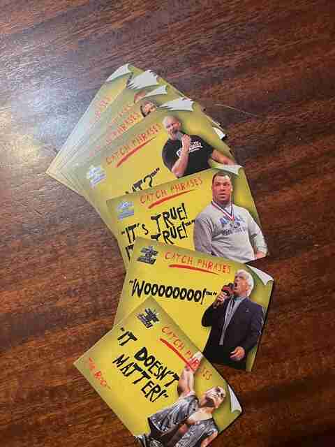 2002 FLEER WWF INSERT CARDS "CATCH PHRASES" (14/15) NM. THE ROCK ...RIC FLAIR...STONE COLD...HOGAN...HHH...BOOKER....JERICHO...NWO.