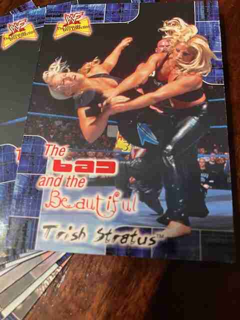 2001 FLEER WWF DIVAS "THE BAD & THE BEAUTIFUL" (10/15) NM. SHORT PRINT INSERT CARDS. INCLUDES 3 DIFFERENT TRISH STRATUS CARDS AND 2 DIFFERENT LITA CARDS.