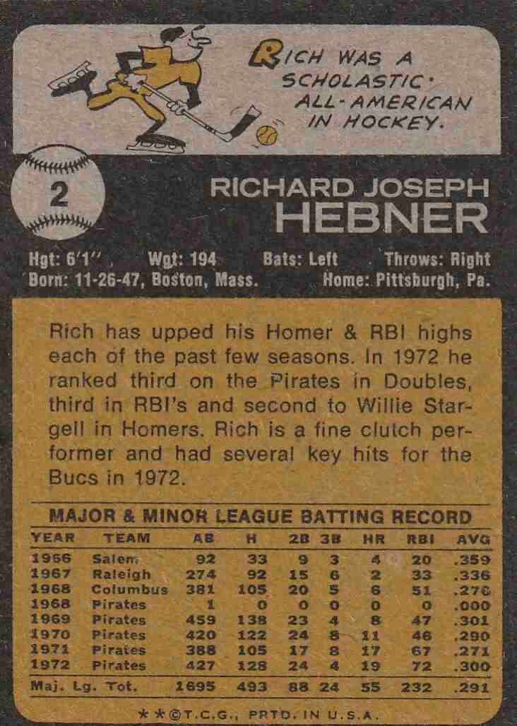19-1973 Topps Pittsburgh Pirates