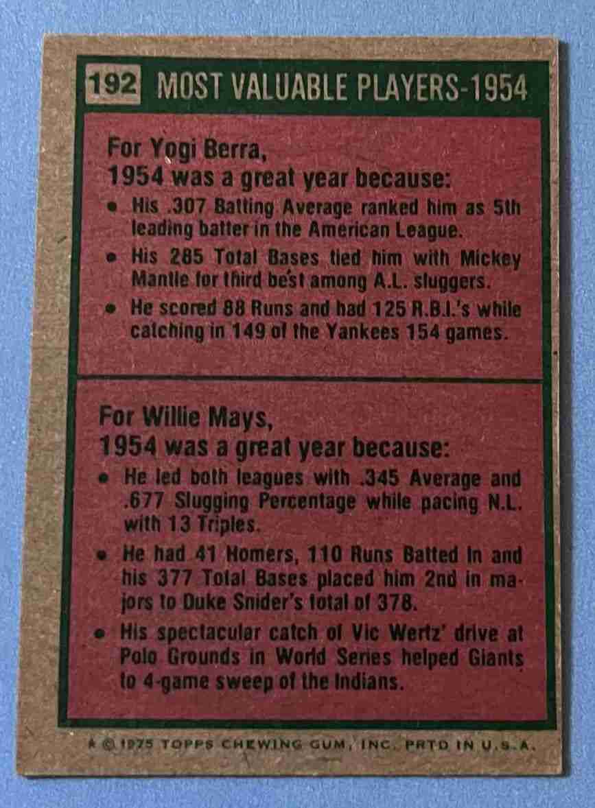 75 ToppsMini 1954 MVPS #192 HOFx2!