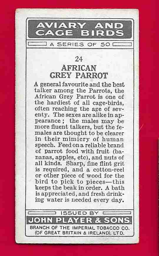 1933 PLAYERS CIGRETTES AVIARY & CAGE BIRDS - AFRICAN GREY