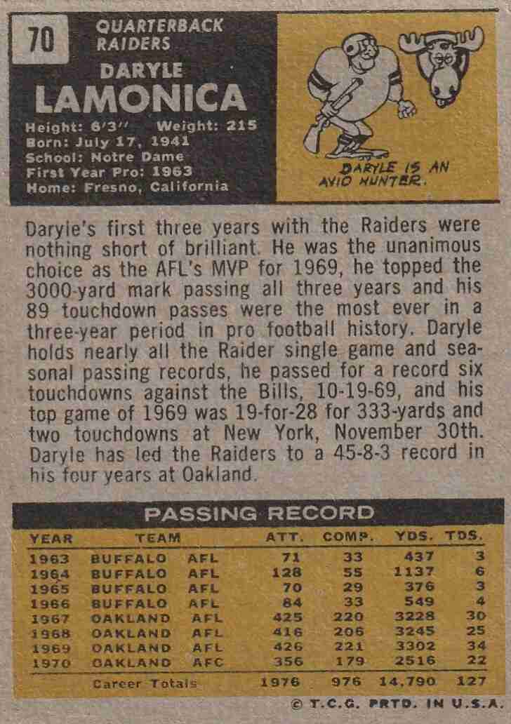 #258 Gus Otto (EX/EX+) #70 Daryle Lamonica (EX)