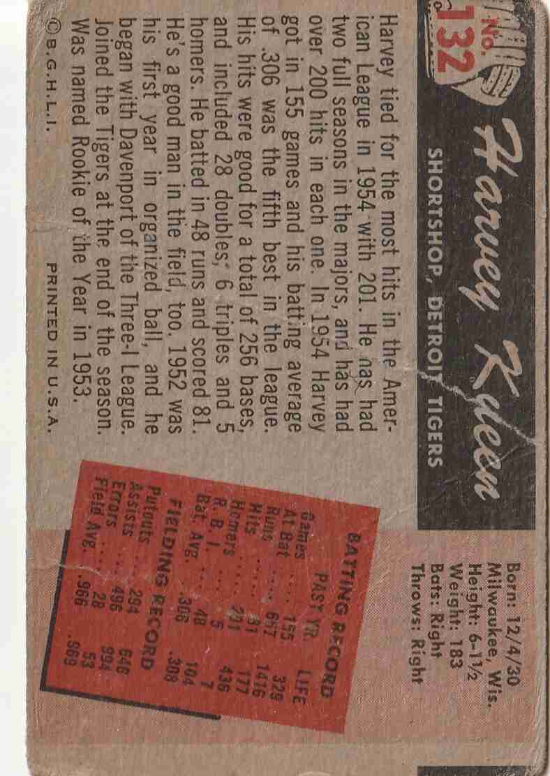 1955 Bowman #132 Harvey Kuenn Tigers (lower grade)