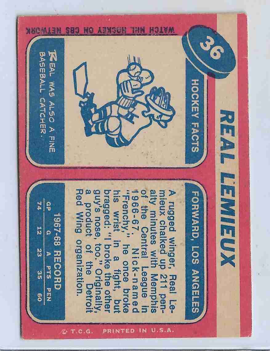 1968-69 Topps #36 ~ Real Lemieux Los Angeles Kings