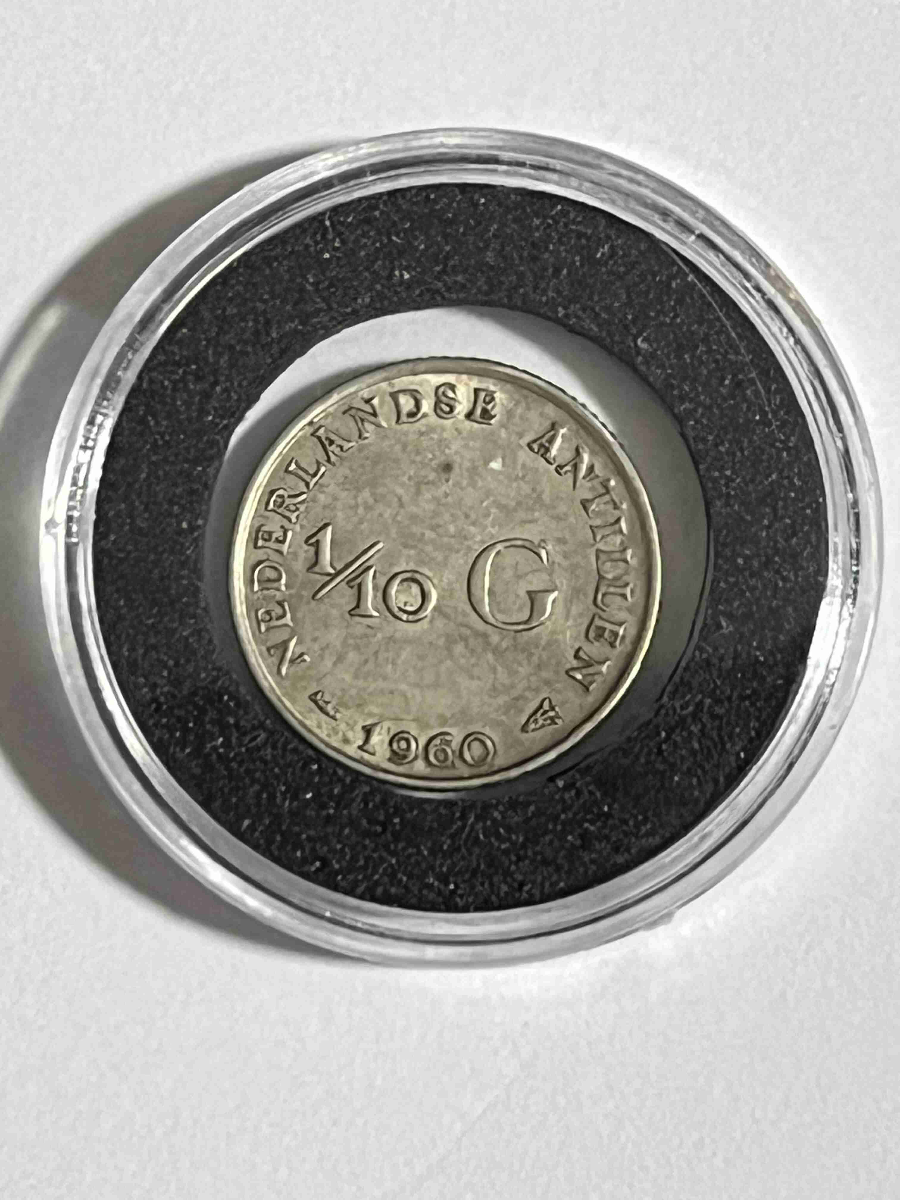1960 Netherlands Antilles 1/10 Gulden. 64% Silver. It’s in a dime case. Free Shipping Winning bidder receives a free gift.