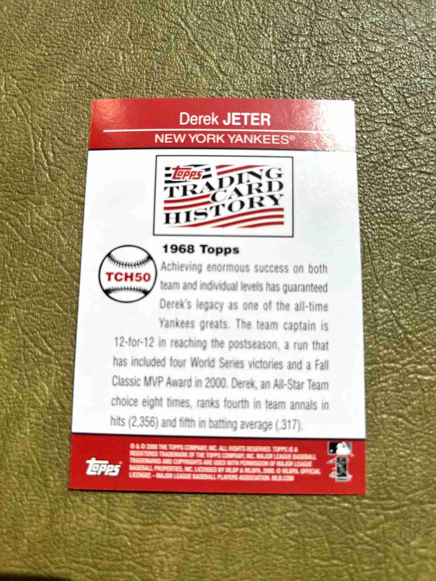 2008 Topps #TCH50 Derek Jeter Trading Card History. Great near mint condition- see photos for condition. Modeled after the 1968 Topps baseball card design. Please see other auctions for combined shipping.