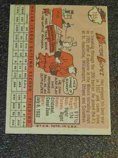 1958 Topps #155 Hector Lopez - EX/EX+ - BV $10