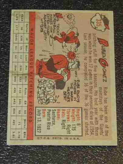 1958 Topps #335 Ruben Gomez - EX/EX+ - BV $8