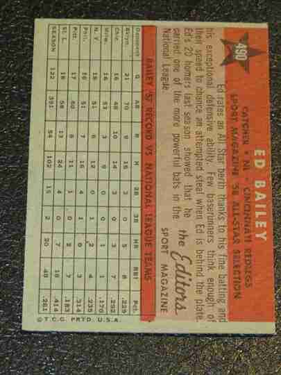 1958 Topps #490 Ed Bailey AS- VG+/EX - BV $8