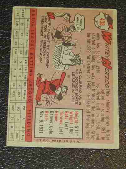 1958 Topps #438 Whitey Herzog - VG+/EX - BV $10