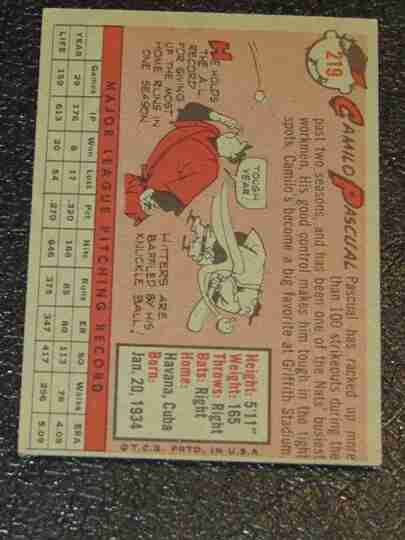 1958 Topps #219 Camilo Pascual - VG+/EX - BV $10