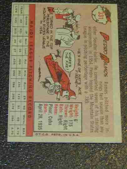 1958 Topps #331 Pedro Ramos - EX/EX+ - BV $8